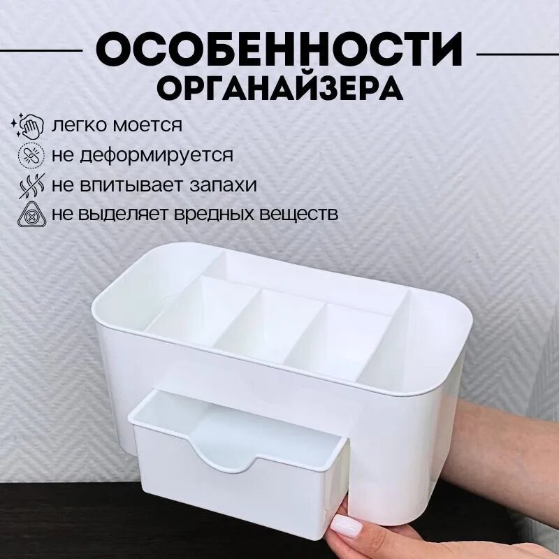 Универсальный органайзер CANBI для хранения косметики и канцелярии с выдвижным ящиком, белый