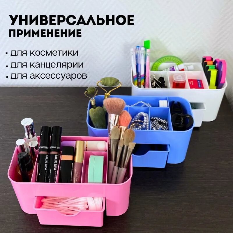Универсальный органайзер CANBI для хранения косметики и канцелярии с выдвижным ящиком, голубой