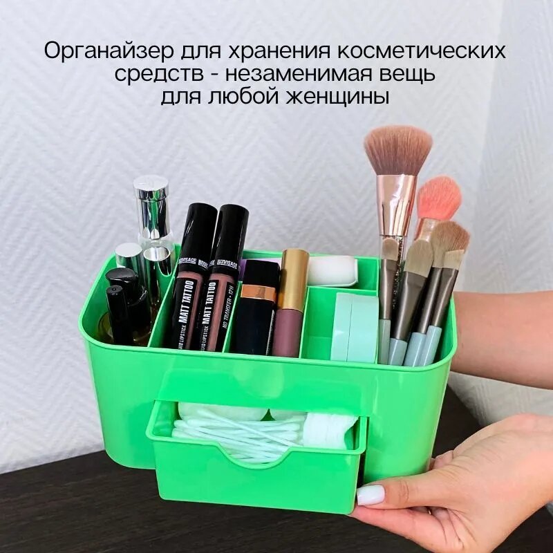 Универсальный органайзер CANBI для хранения косметики и канцелярии с выдвижным ящиком, зеленый