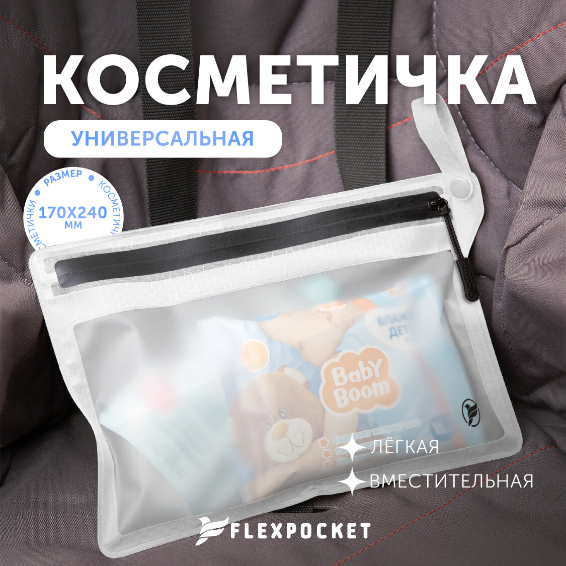 Косметичка Flexpocket, 17х24 см, , белый интересное: