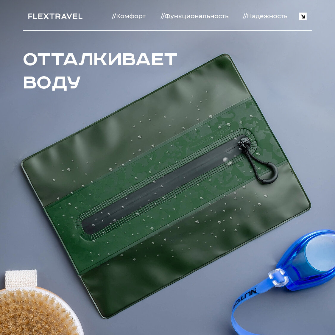 Косметичка дорожная в комплекте с мочалкой FlexTravel, женская мужская для бассейна душа