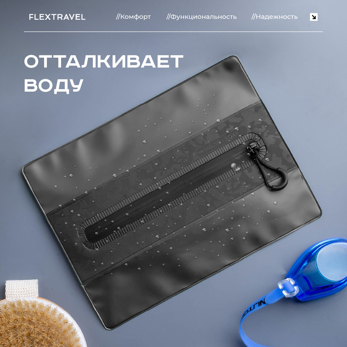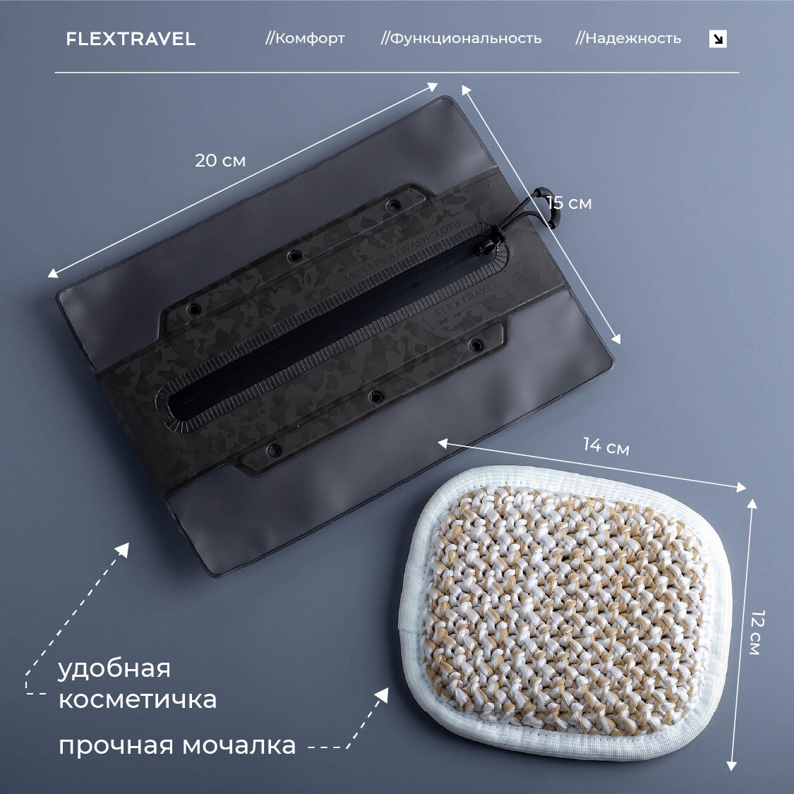 Косметичка дорожная в комплекте с мочалкой FlexTravel, женская мужская для бассейна душа