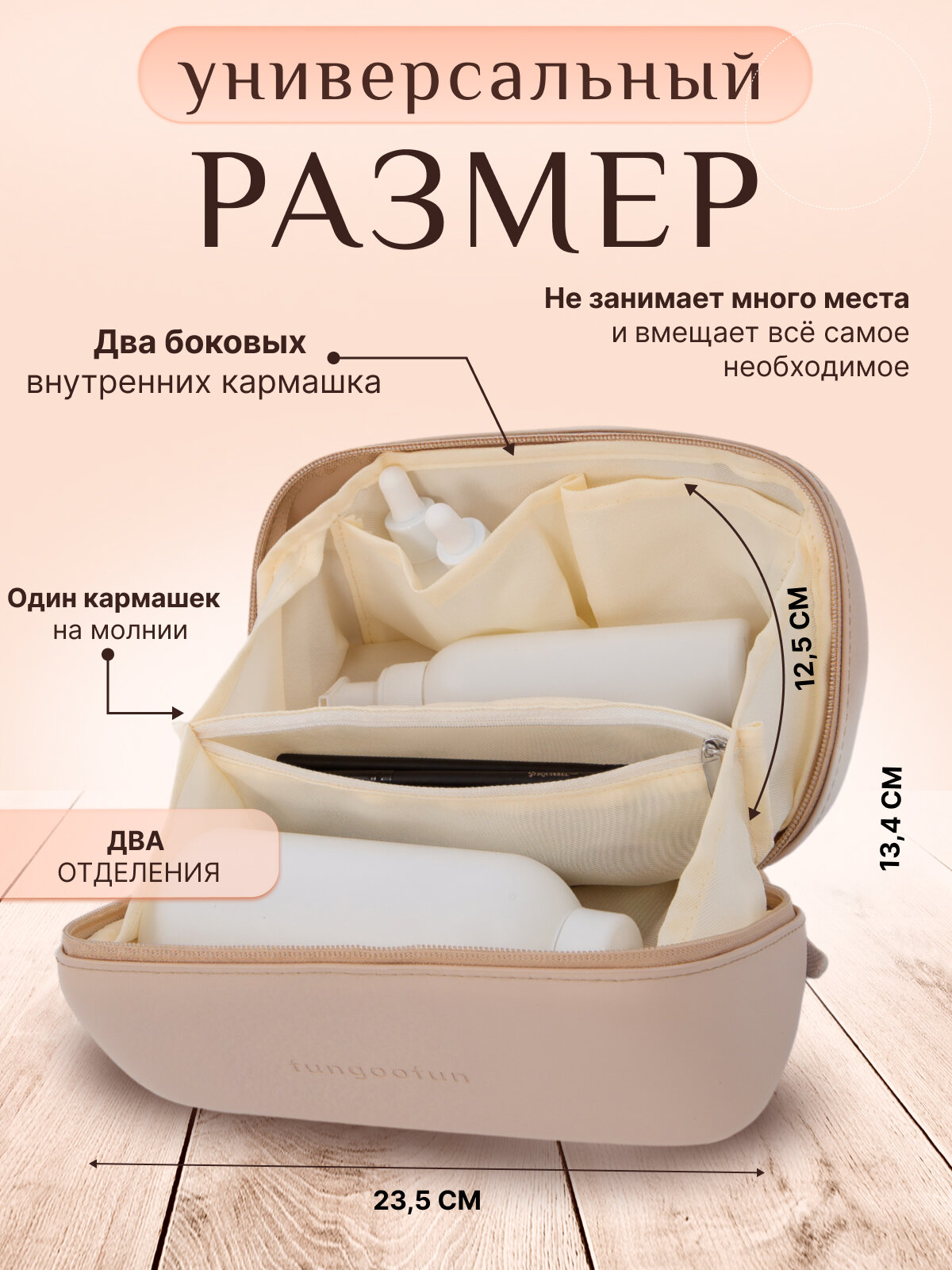 Косметичка Fungoofun, 13х14х24 см, , бежевый интересное: