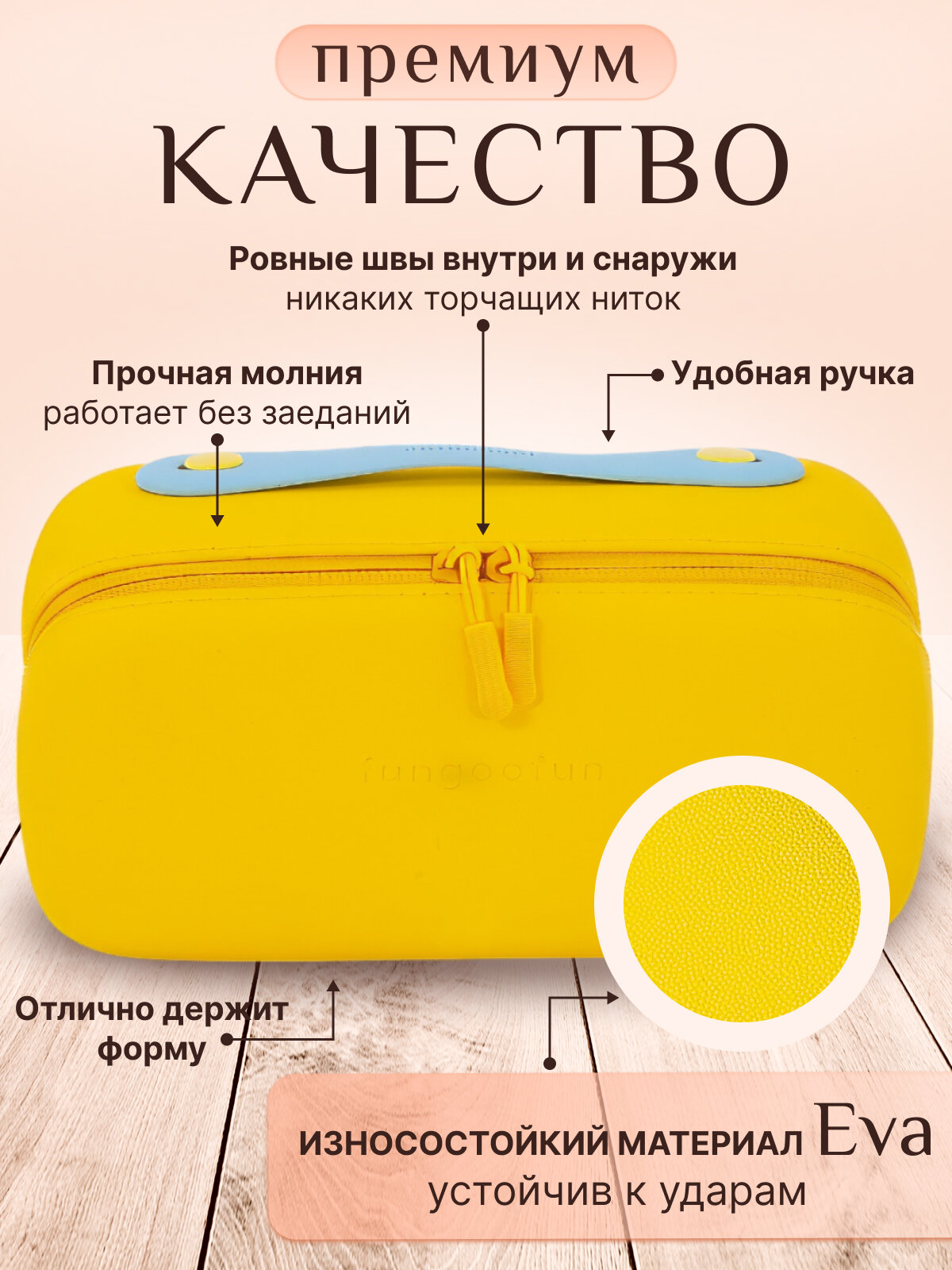 Косметичка Fungoofun, 13х14х24 см, , желтый интересное: