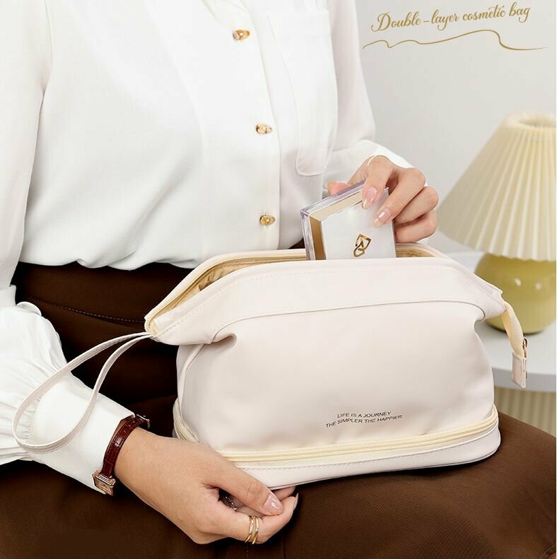 Косметичка BOTTONCINI дорожная, с двойным дном 2 в 1, белый, р-р 25х20х15 см