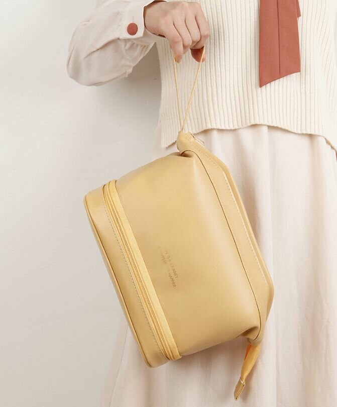 Косметичка BOTTONCINI дорожная, с двойным дном 2 в 1, желтый, р-р 25х20х15 см