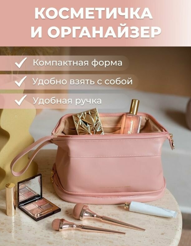 Косметичка BOTTONCINI дорожная, с двойным дном 2 в 1, розовый, р-р 25х20х15 см