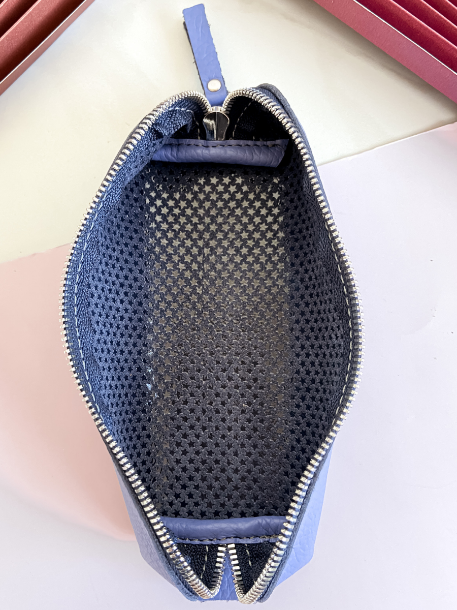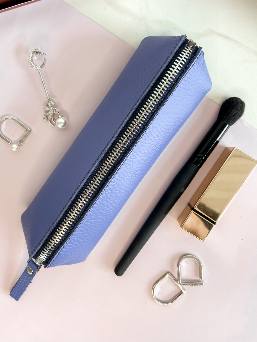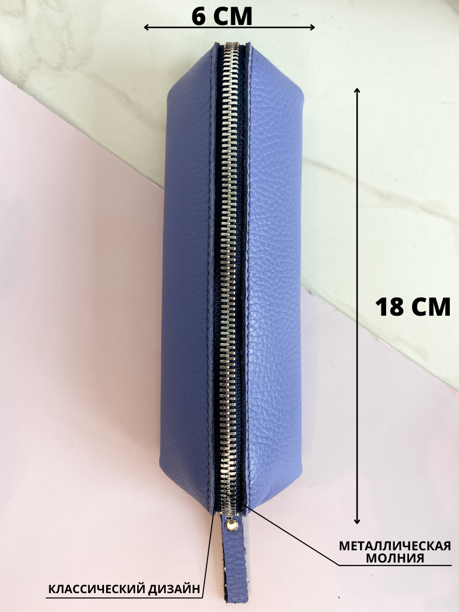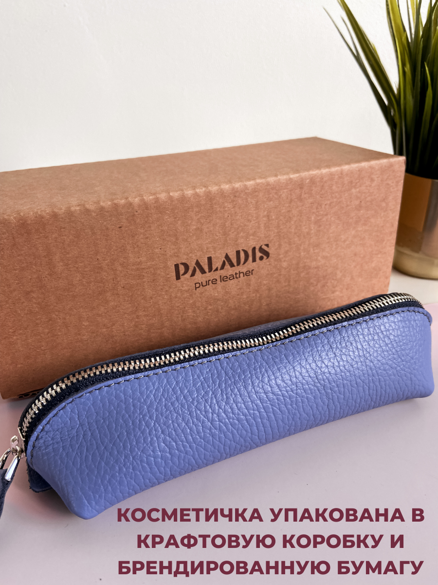 Косметичка из натуральной кожи (18х6х6 см) Paladis, сиреневый, Органайзер для косметики и канцелярии, Пенал школьный на молнии