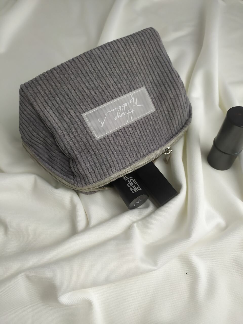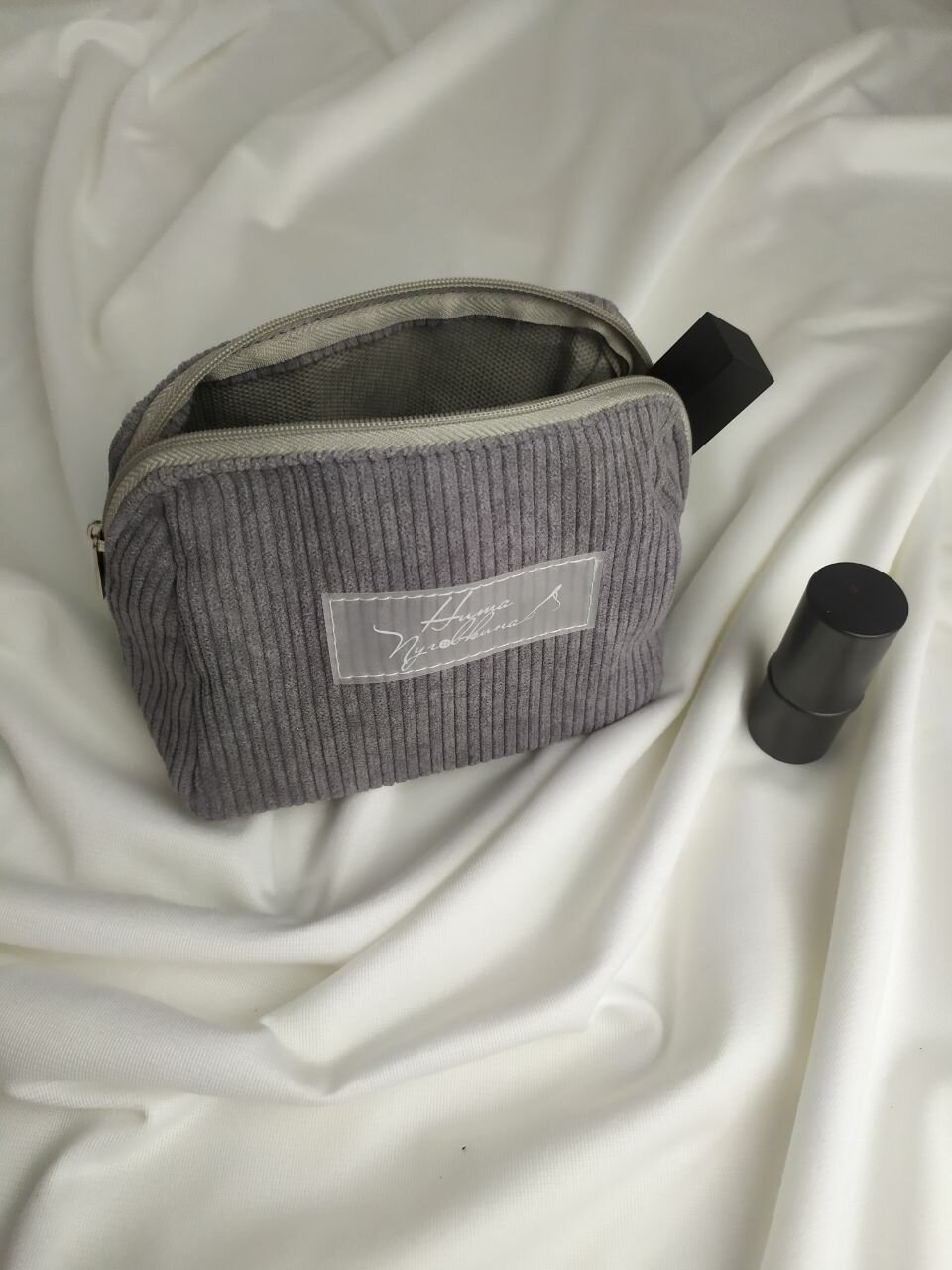 Косметичка вельветовая большая, серый