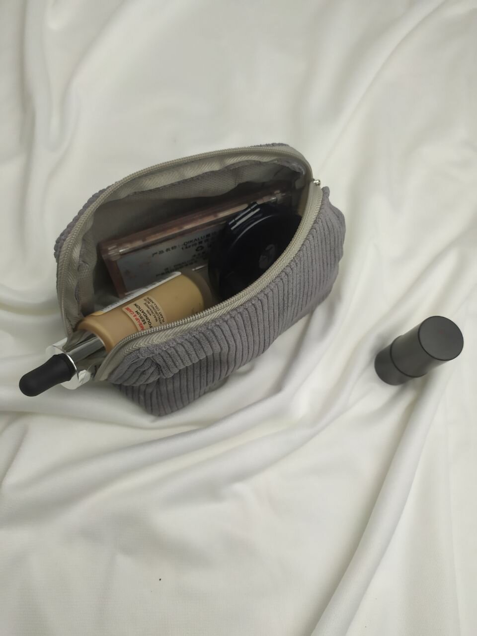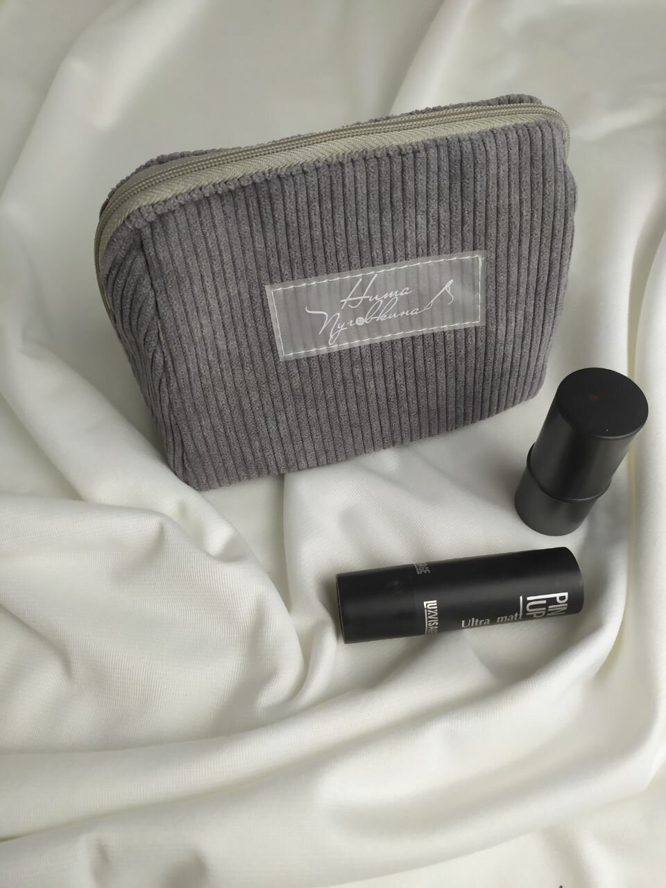 Косметичка вельветовая маленькая, серая