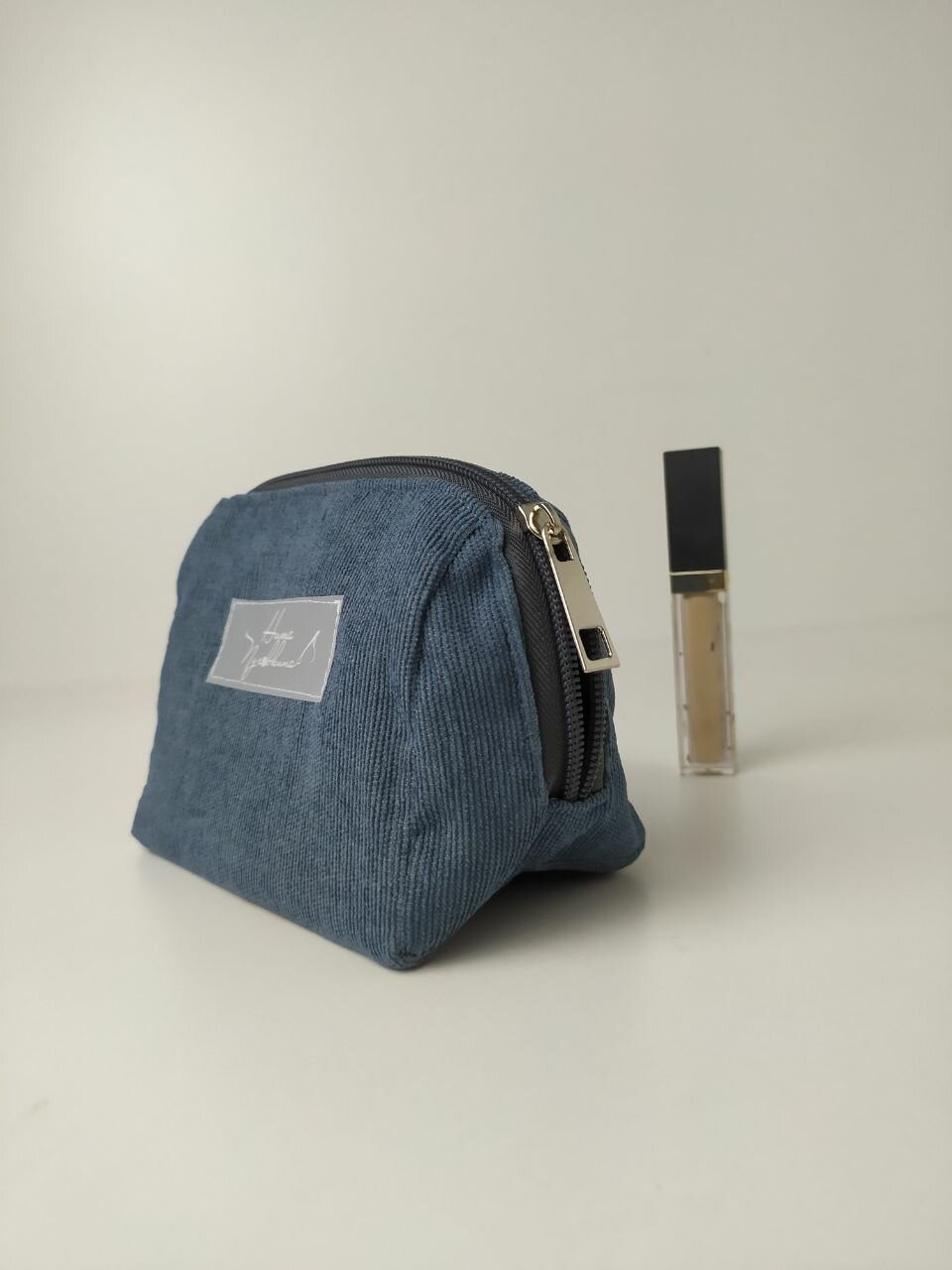 Косметичка вельветовая маленькая, джинс