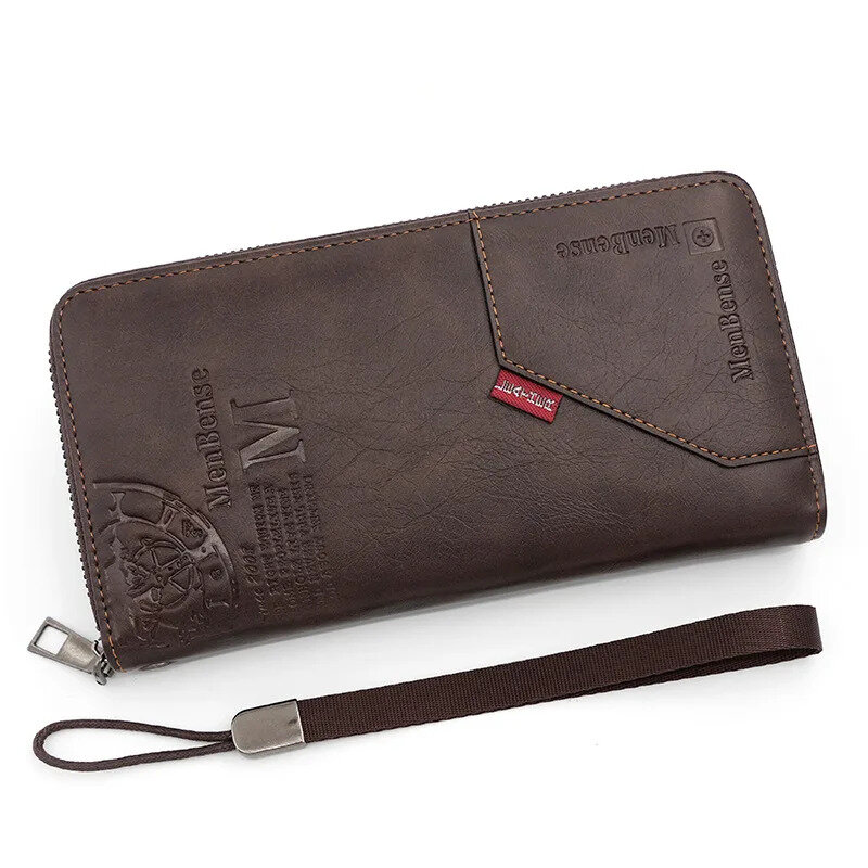 Кошелек мужской большой / Мужской клатч коричневый с ремешком на запястье / Портмоне мужское