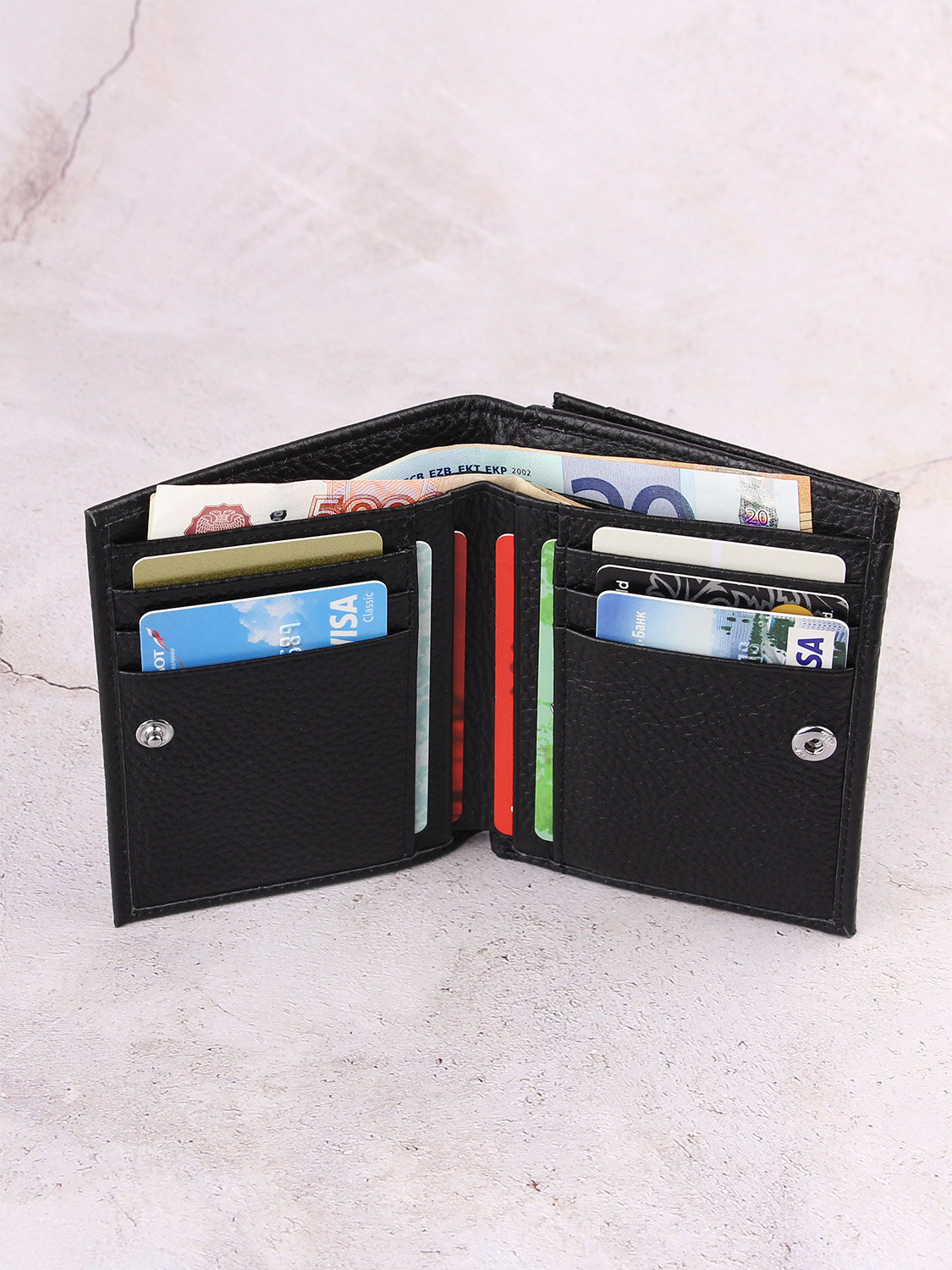 Кошелек маленький кожаный, портмоне для карт из натуральной кожи, черный