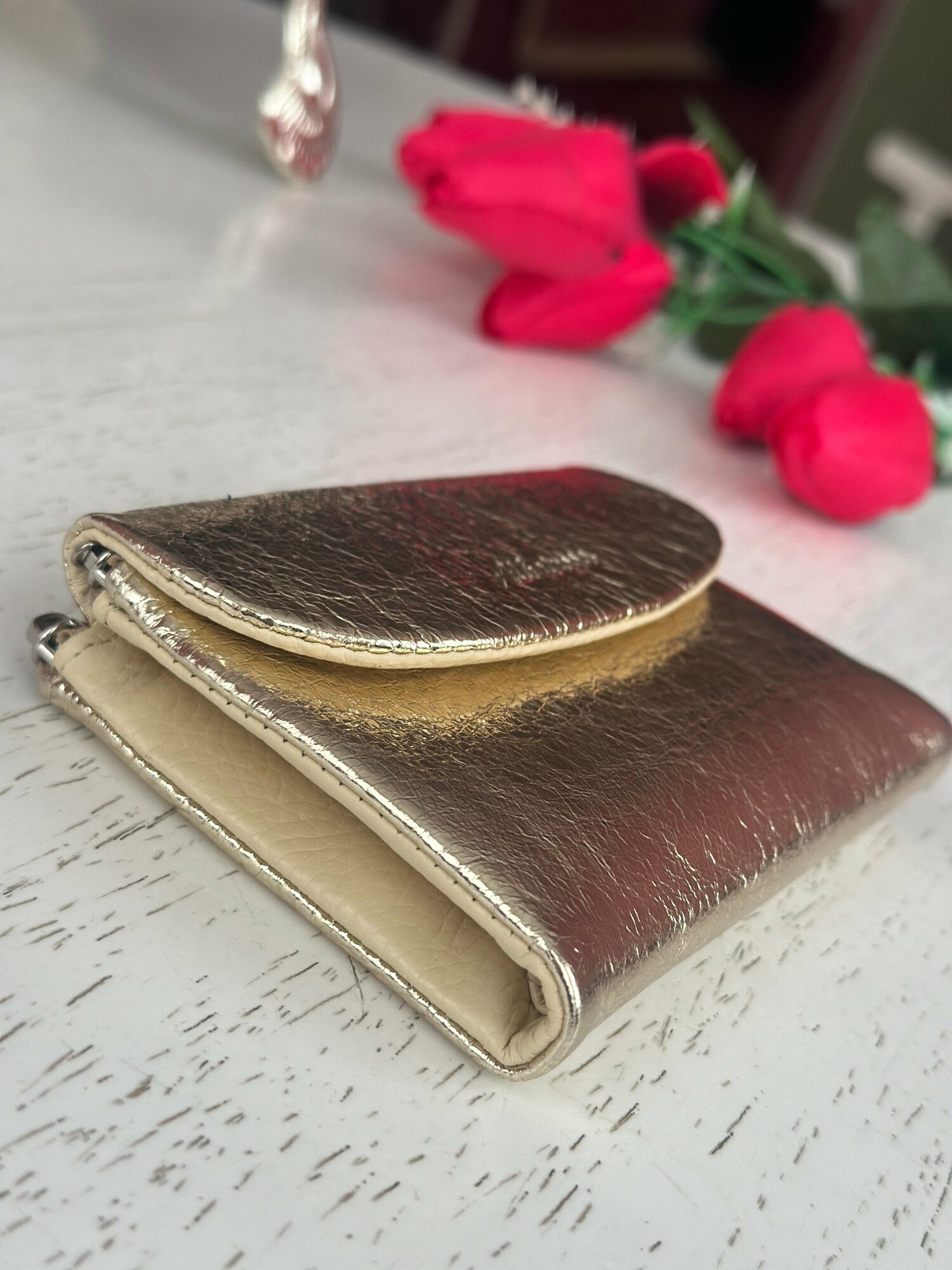 Кошелек LAK, фактура гладкая, золотистый интересное: