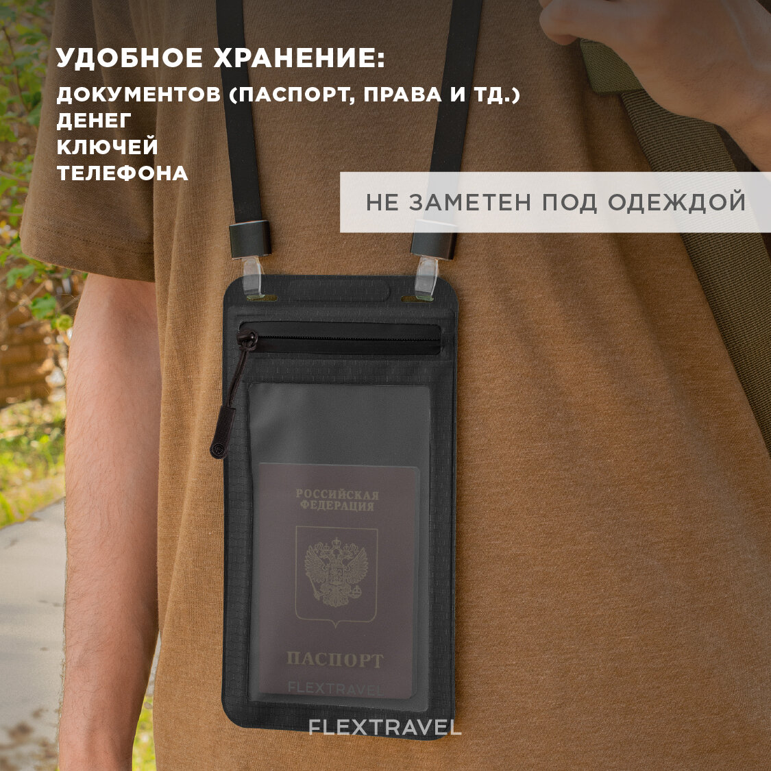 Сумка кошелек на шею для телефона и документов Flexpocket, бейдж в путешествие, дорожное портмоне