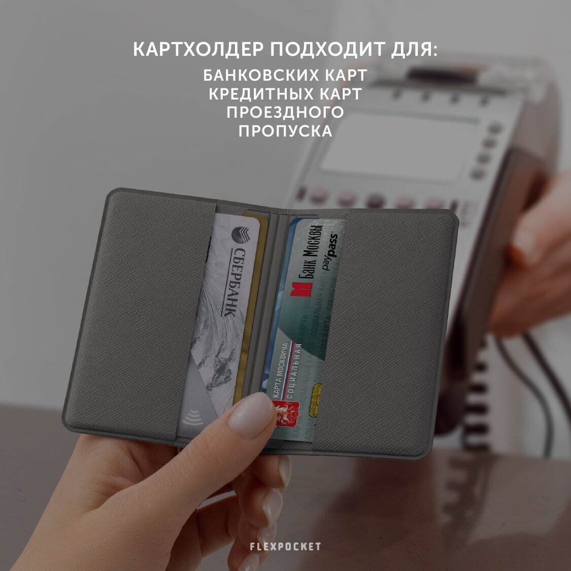 Картхолдер Flexpocket с RFID защитой для 4 карт, кредитница, футляр для карт, цвет Черно-серый