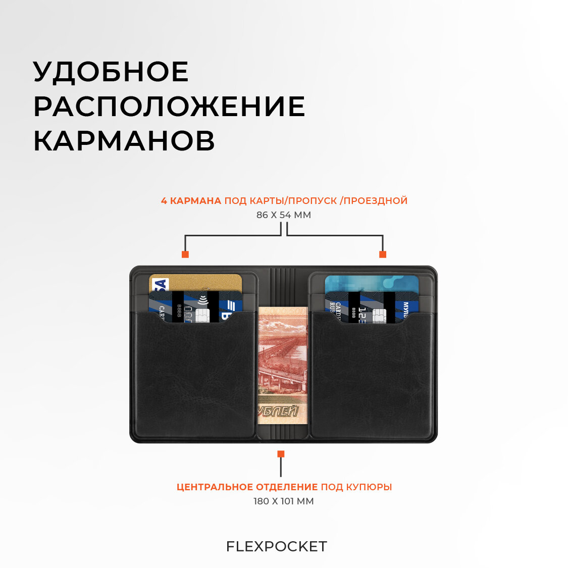 Картхолдер Flexpocket, фактура гладкая, черный интересное: