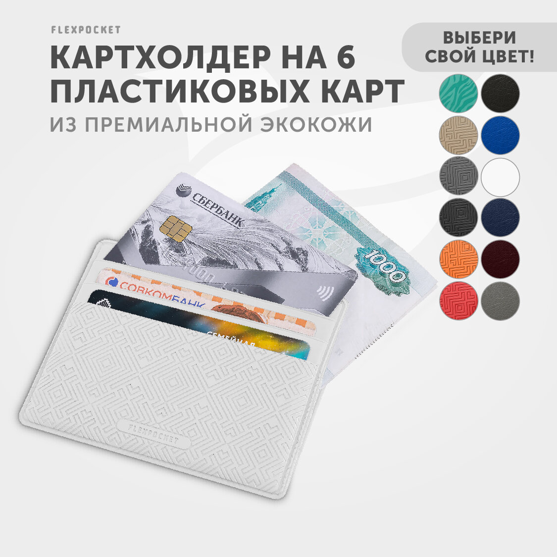 Картхолдер Flexpocket, защитный футляр на 6 карт, держатель для кредитных карт, визитница, гладкая экокожа, цвет Белый