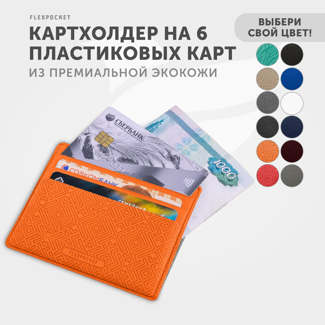 Купить Картхолдер Flexpocket, фактура гладкая, оранжевый