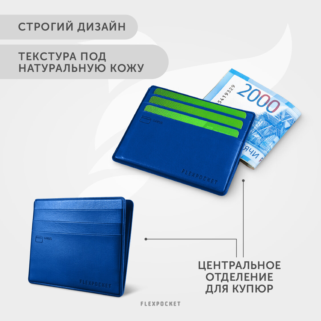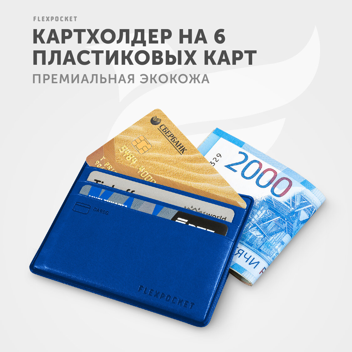 Картхолдер Flexpocket, защитный футляр на 6 карт, держатель для кредитных карт, визитница, гладкая экокожа, цвет Синий