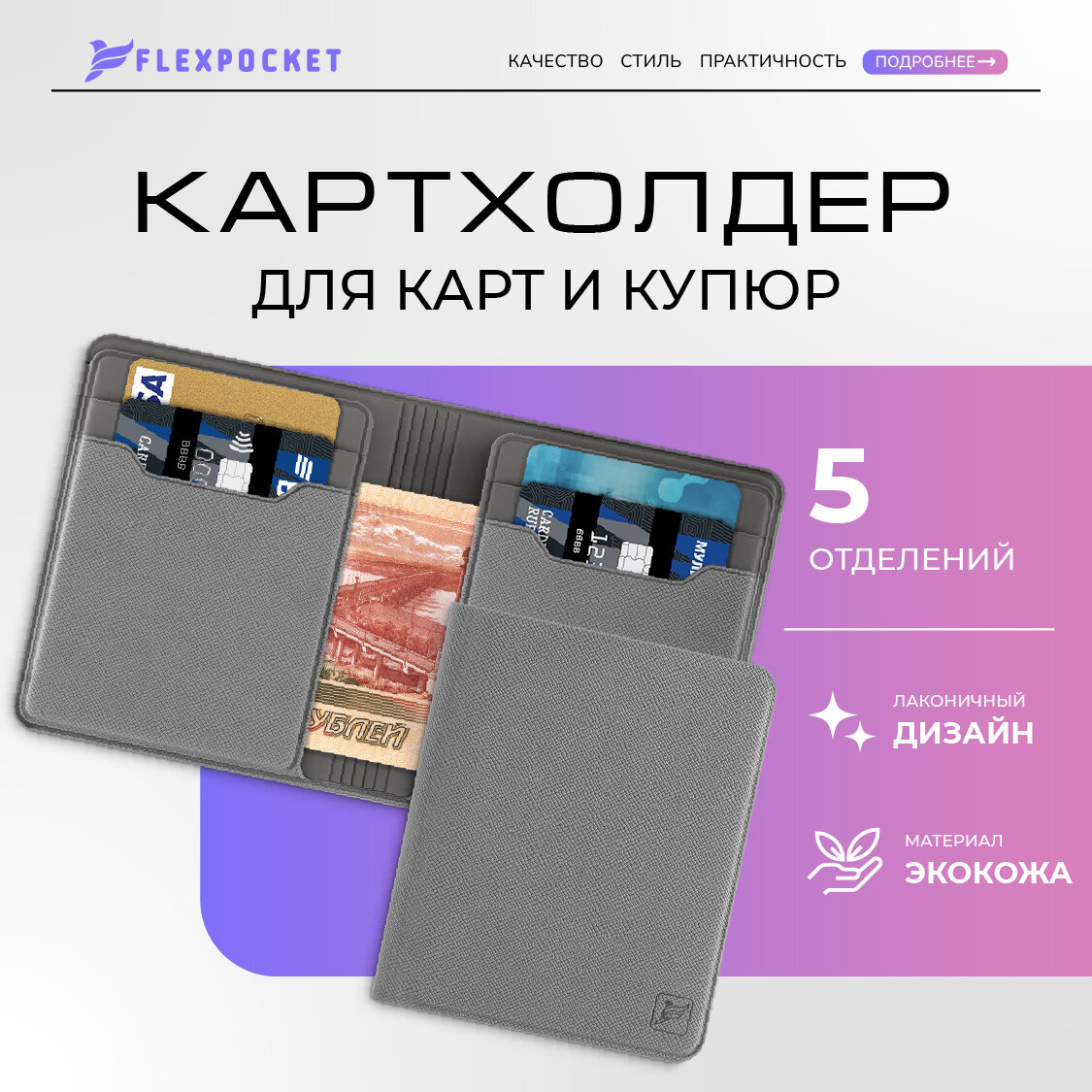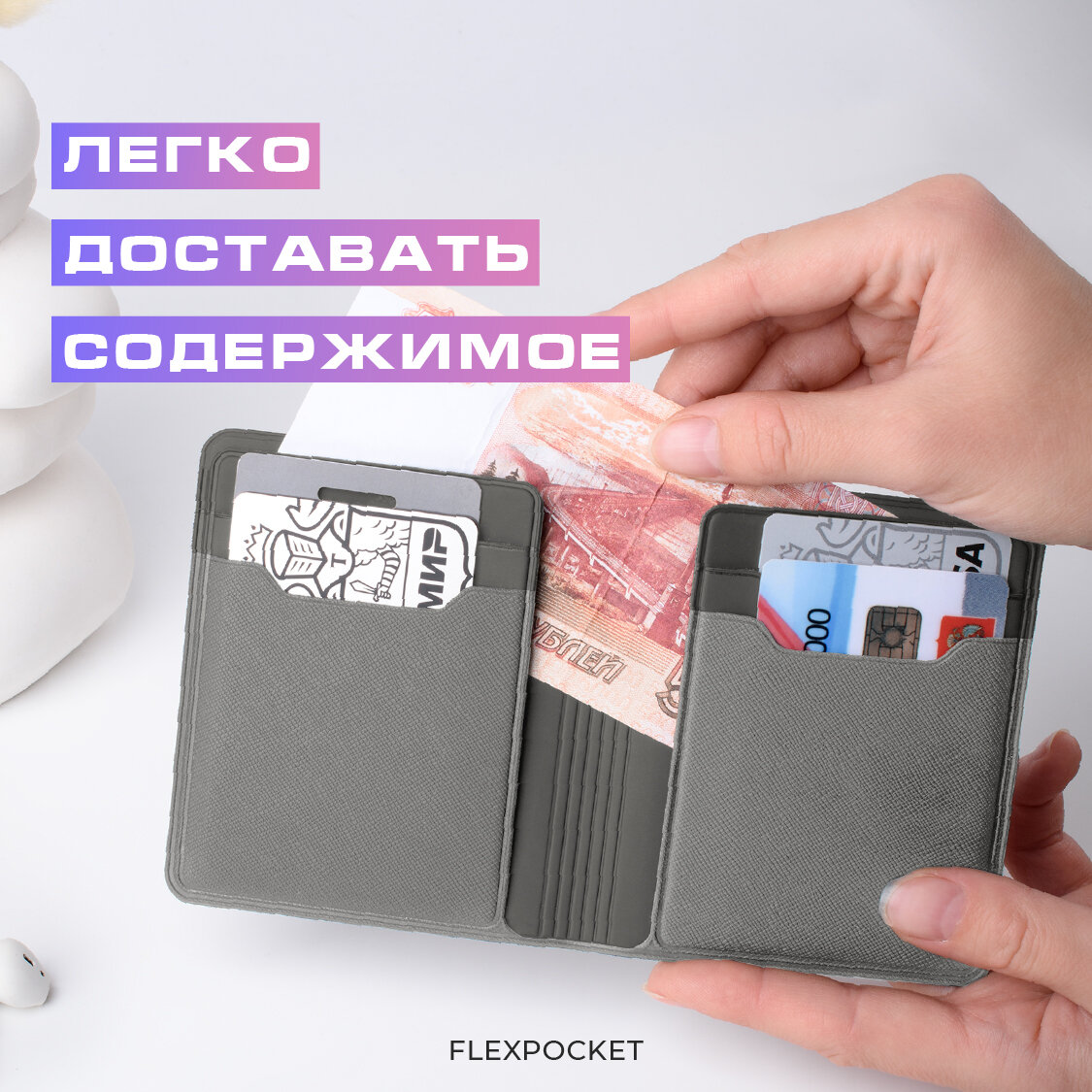 Картхолдер Flexpocket на 4 карты и 2 дополнительными карманами, визитница мужская или женская, кредитница для карт из экокожи