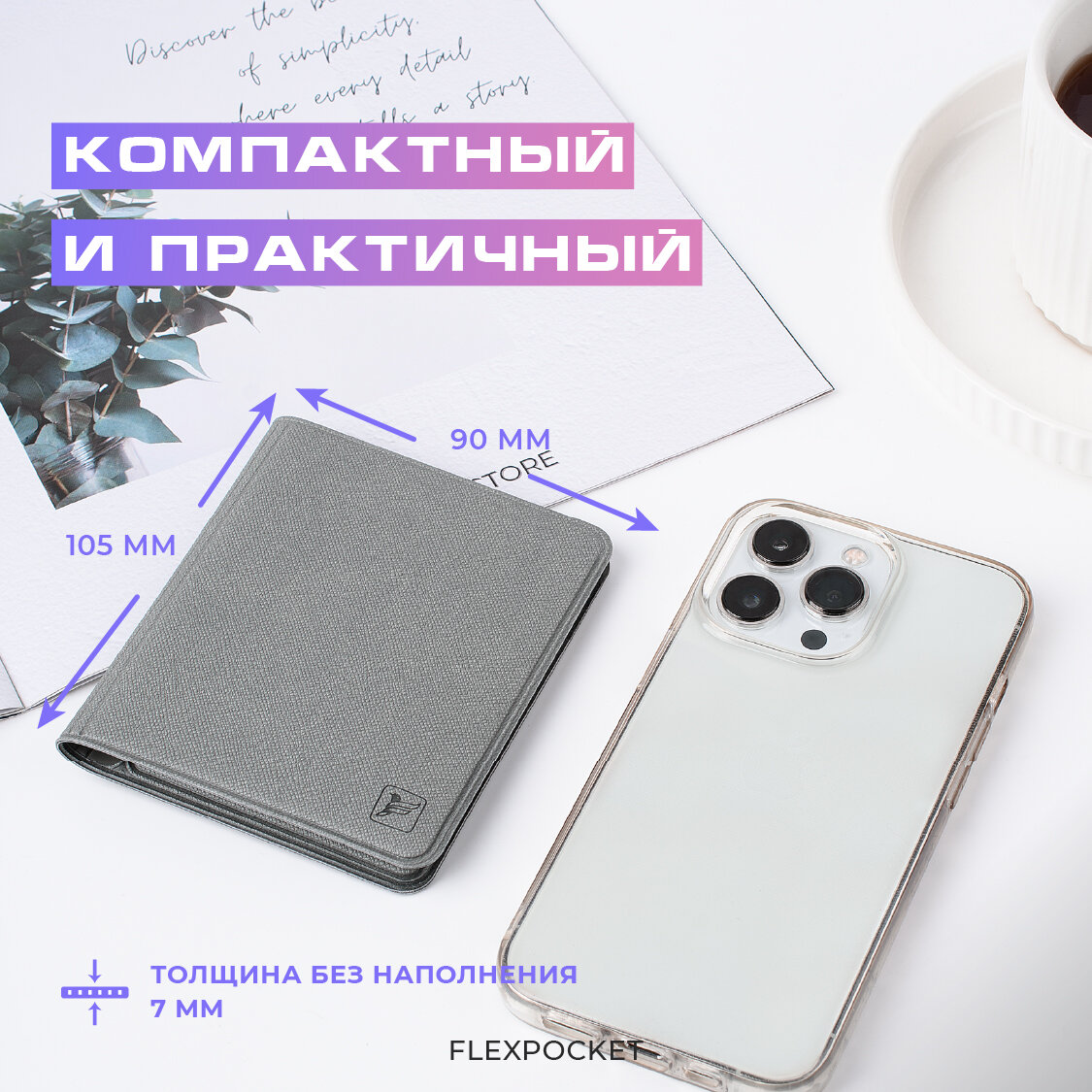 Картхолдер Flexpocket, фактура зернистая, серый интересное: