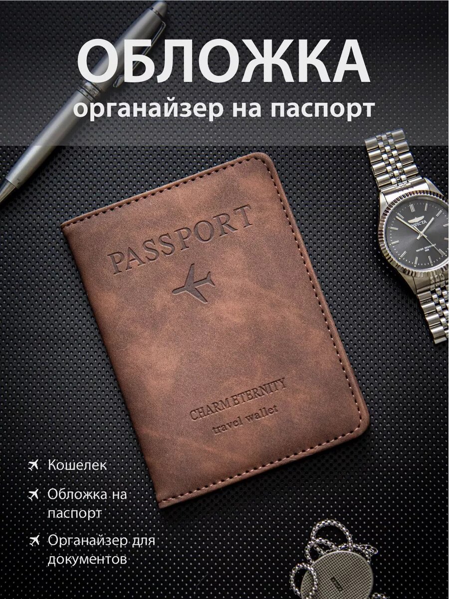 Документница для паспорта TRAVELKIN, коричневый интересное: