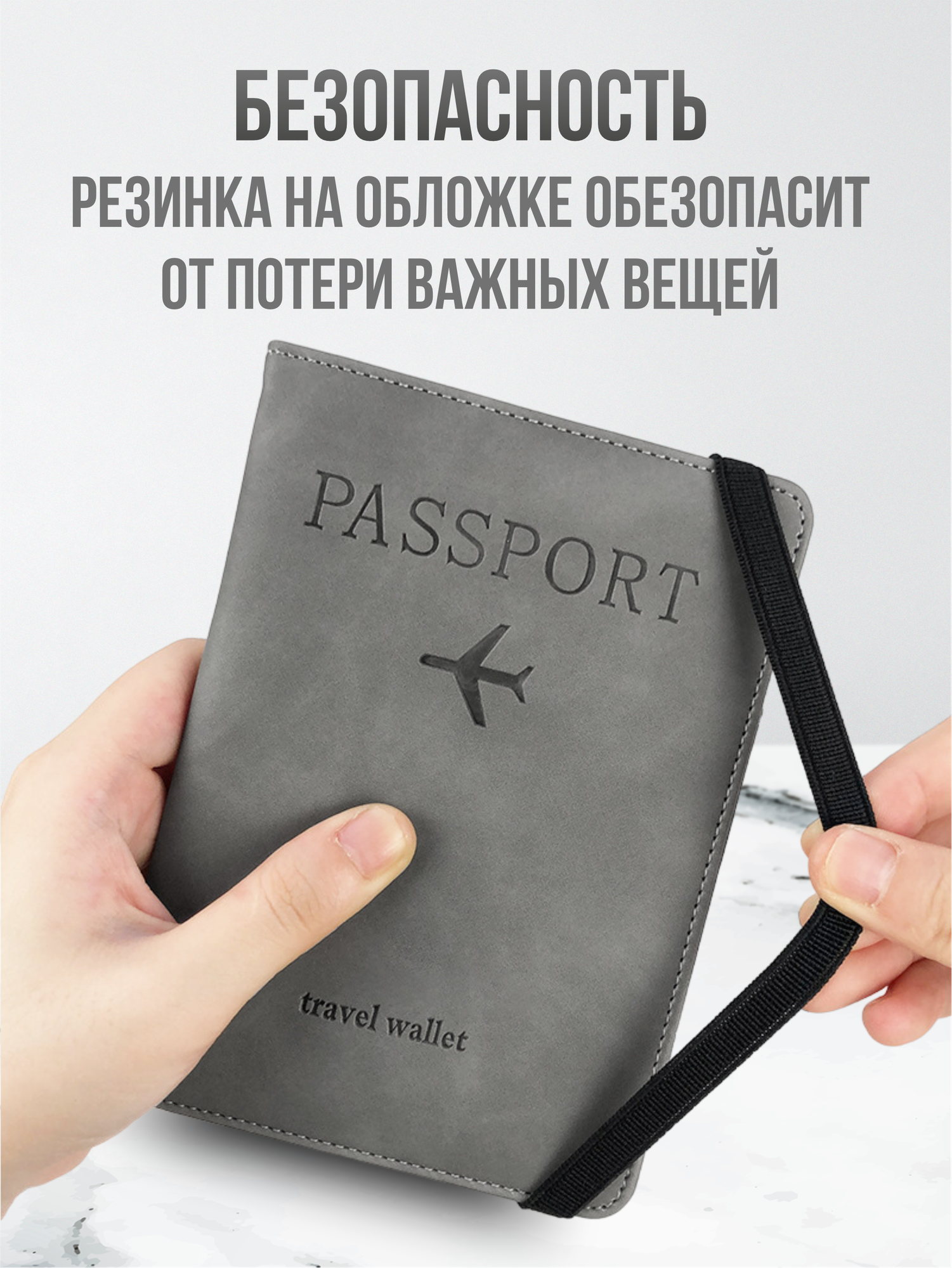 Обложка на паспорт, чехол для документов с кармашками для для карт , для авиабилетов , серая