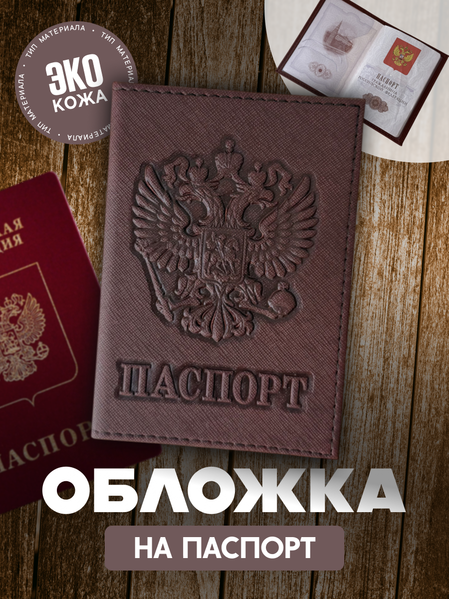 Обложка на паспорт из натуральной кожи с гербом / кожаная / мужская / женская / для документов