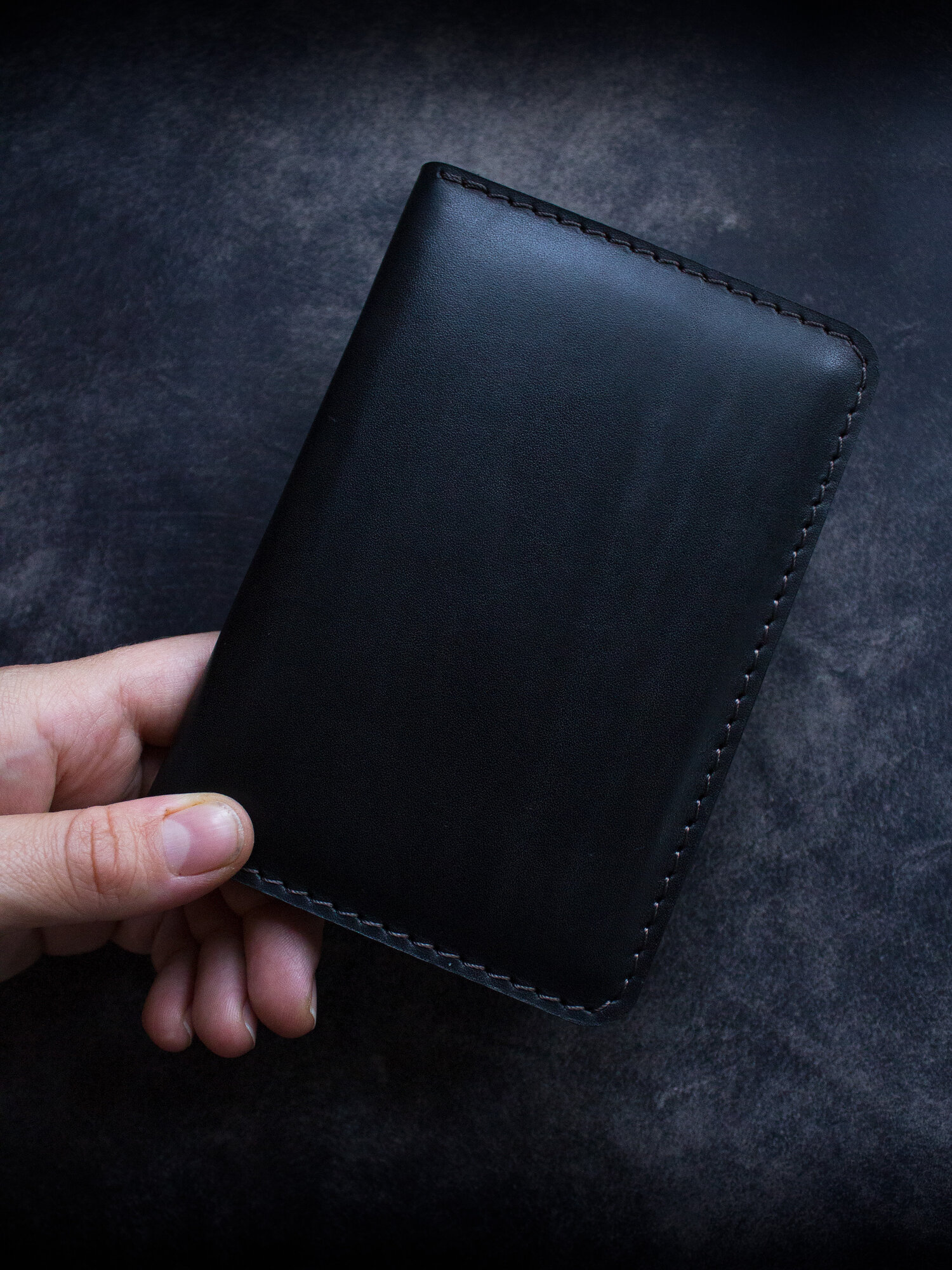 Обложка для автодокументов и паспорта KOVACH из натуральной кожи черного цвета с чёрной строчкой ручной работы
