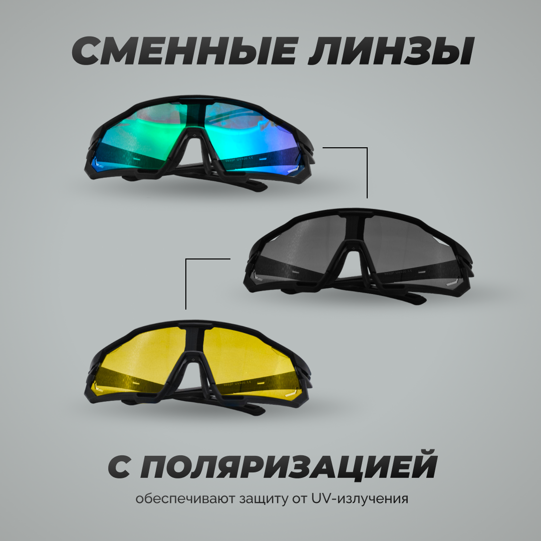 Очки спортивные для вождения, спорта, рыбалки 3 в 1. Антифара, солнцезащитные, поляризационные со сменными линзами