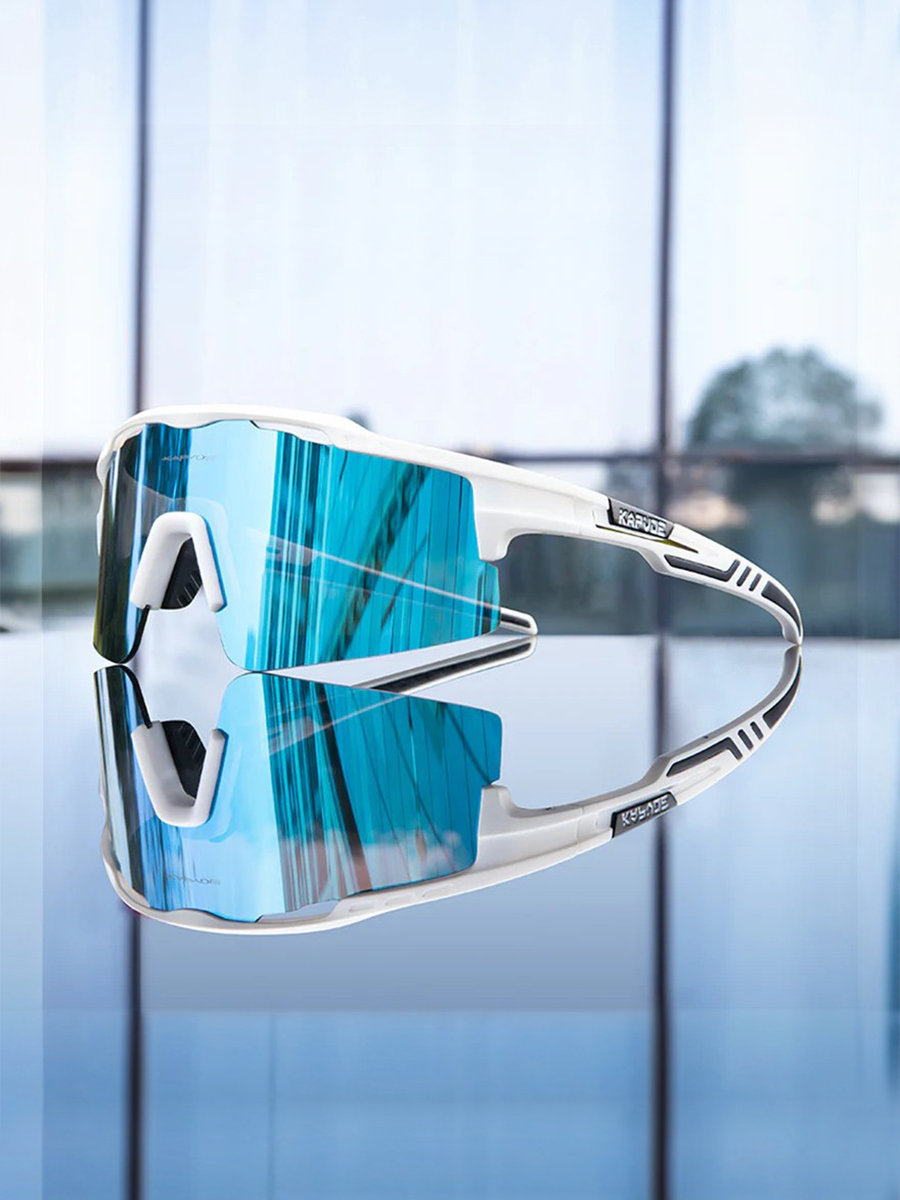 Очки спортивные солнцезащитные Kapvoe с защитой от UV400 с защитой от UV400, цвет белый cиней линзой