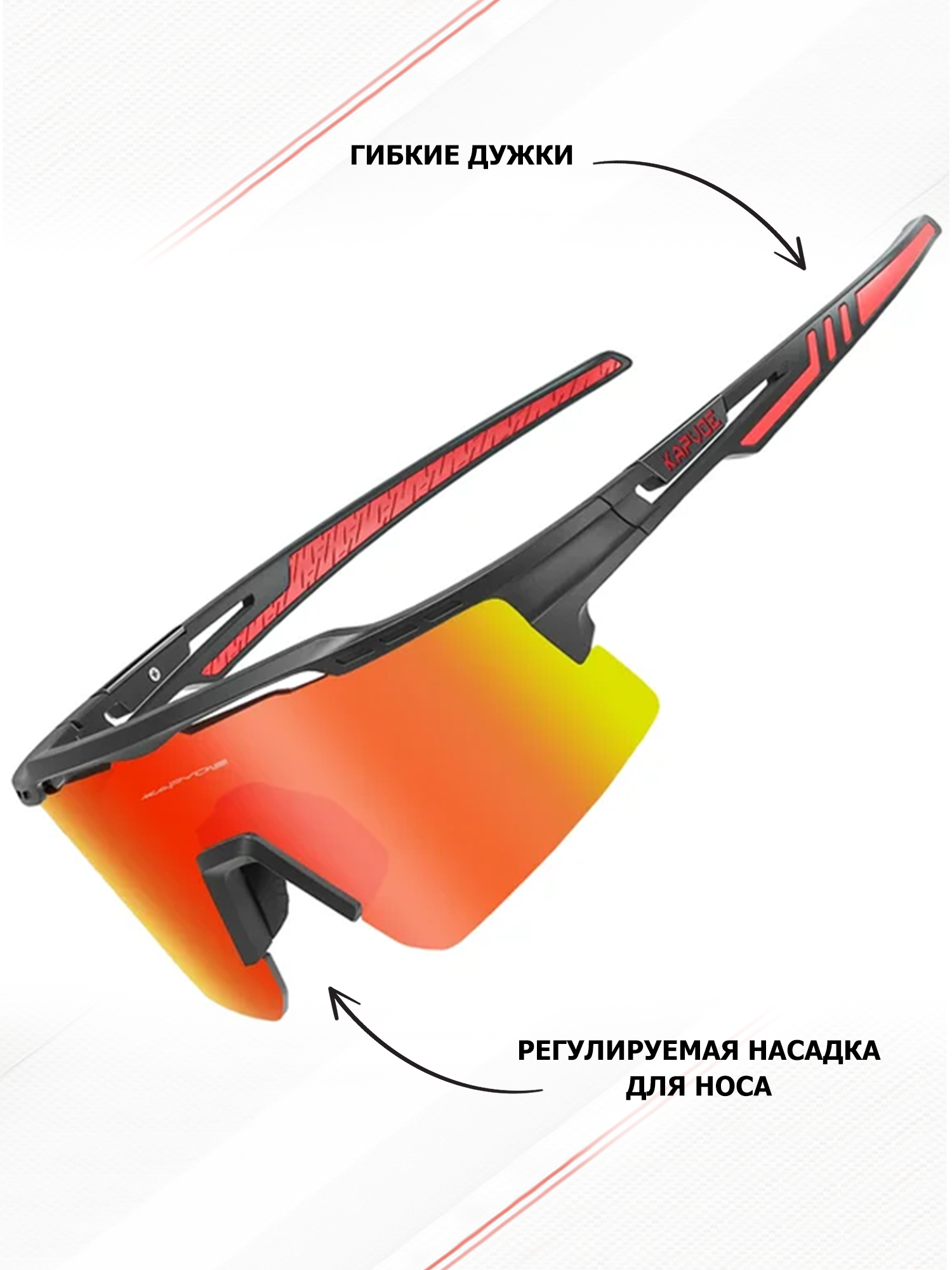 Очки спортивные солнцезащитные для мужчин и женщин Kapvoe для велосипеда, туризма, бега, лыжероллеров, лыж, цвет черный красный оранжевый, UV400