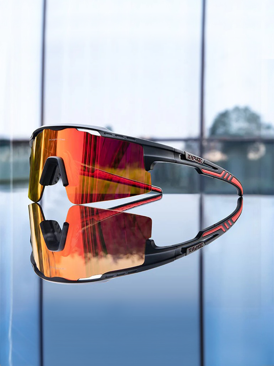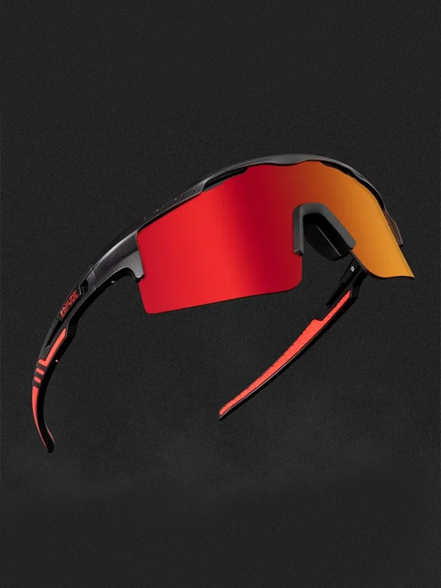 Очки спортивные солнцезащитные Kapvoe с защитой от UV400 с защитой от UV400, цвет черный, красный с оранжевой линзой