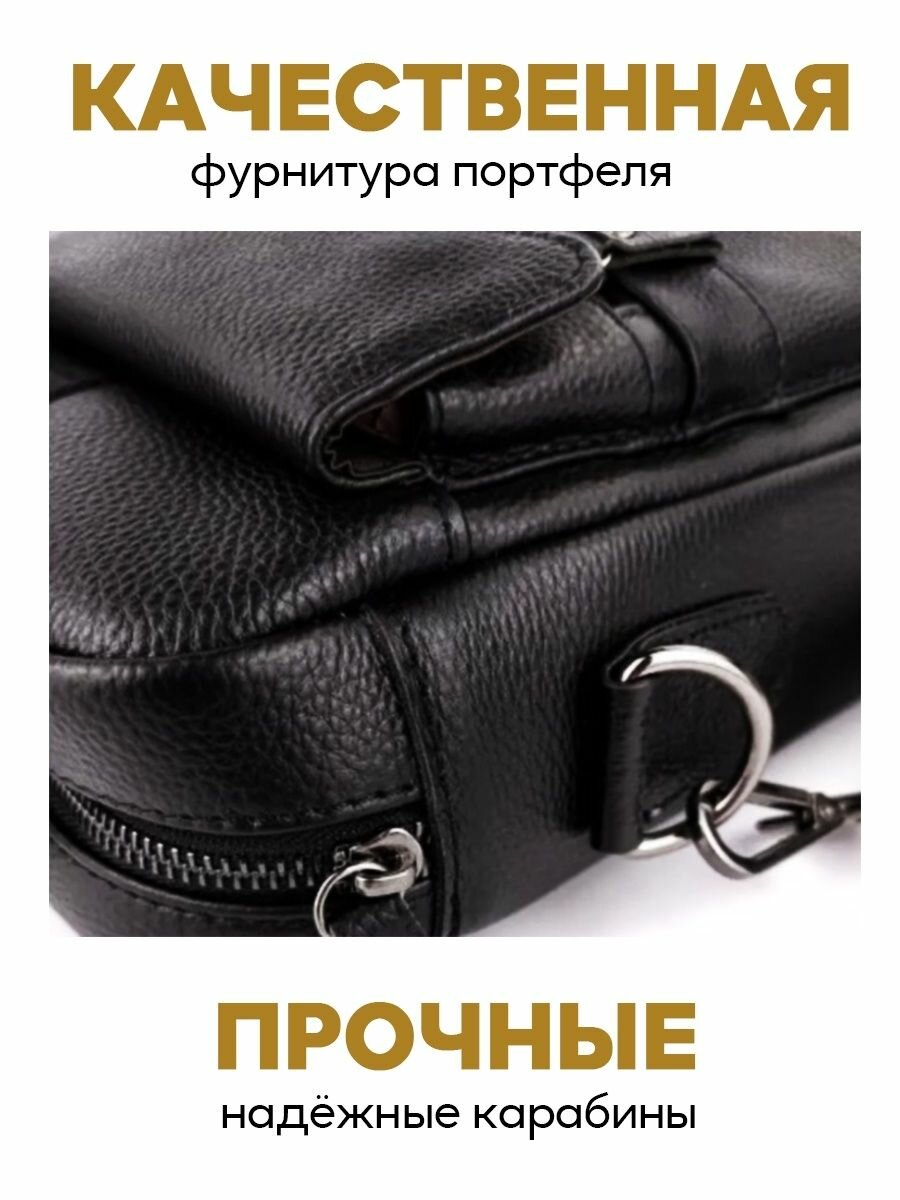 Портфель мужской для документов с ремнем из эко кожи, деловая сумка через плечо черная