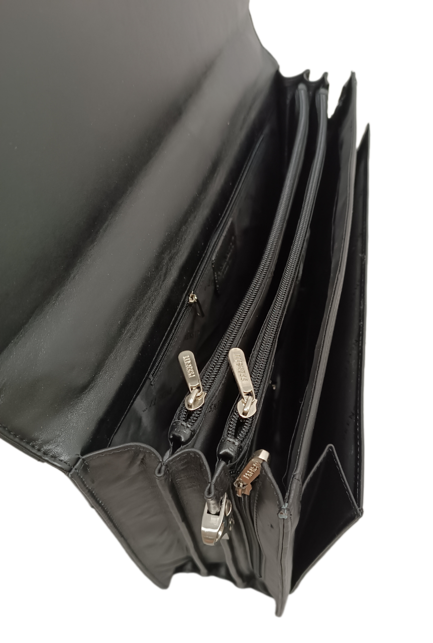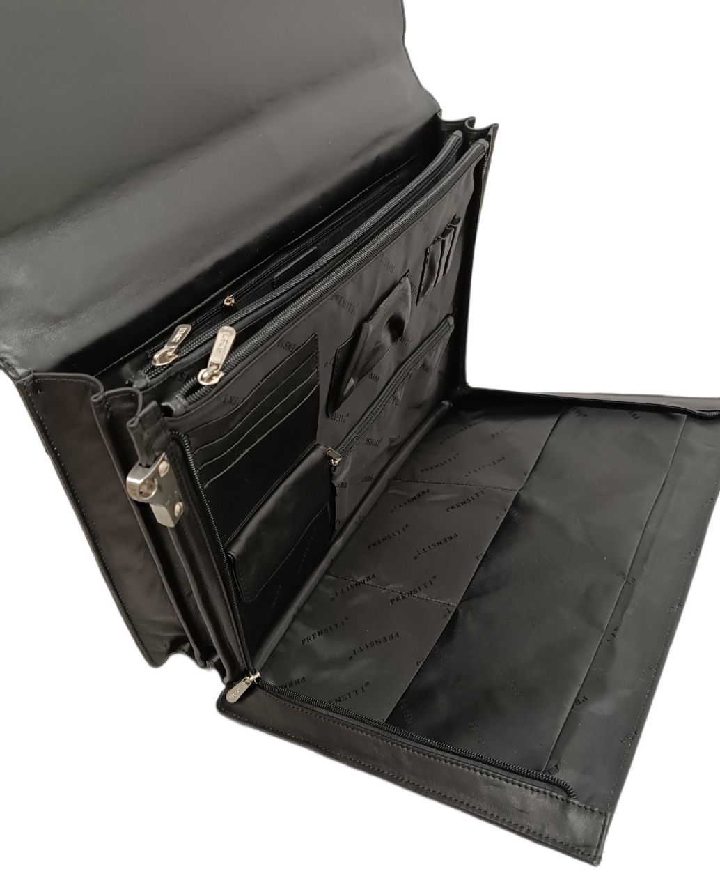 Портфель PRENSITI, натуральная кожа, 3 отделения с перегородками на молниях, с плечевым ремнем, для мужчин, черный