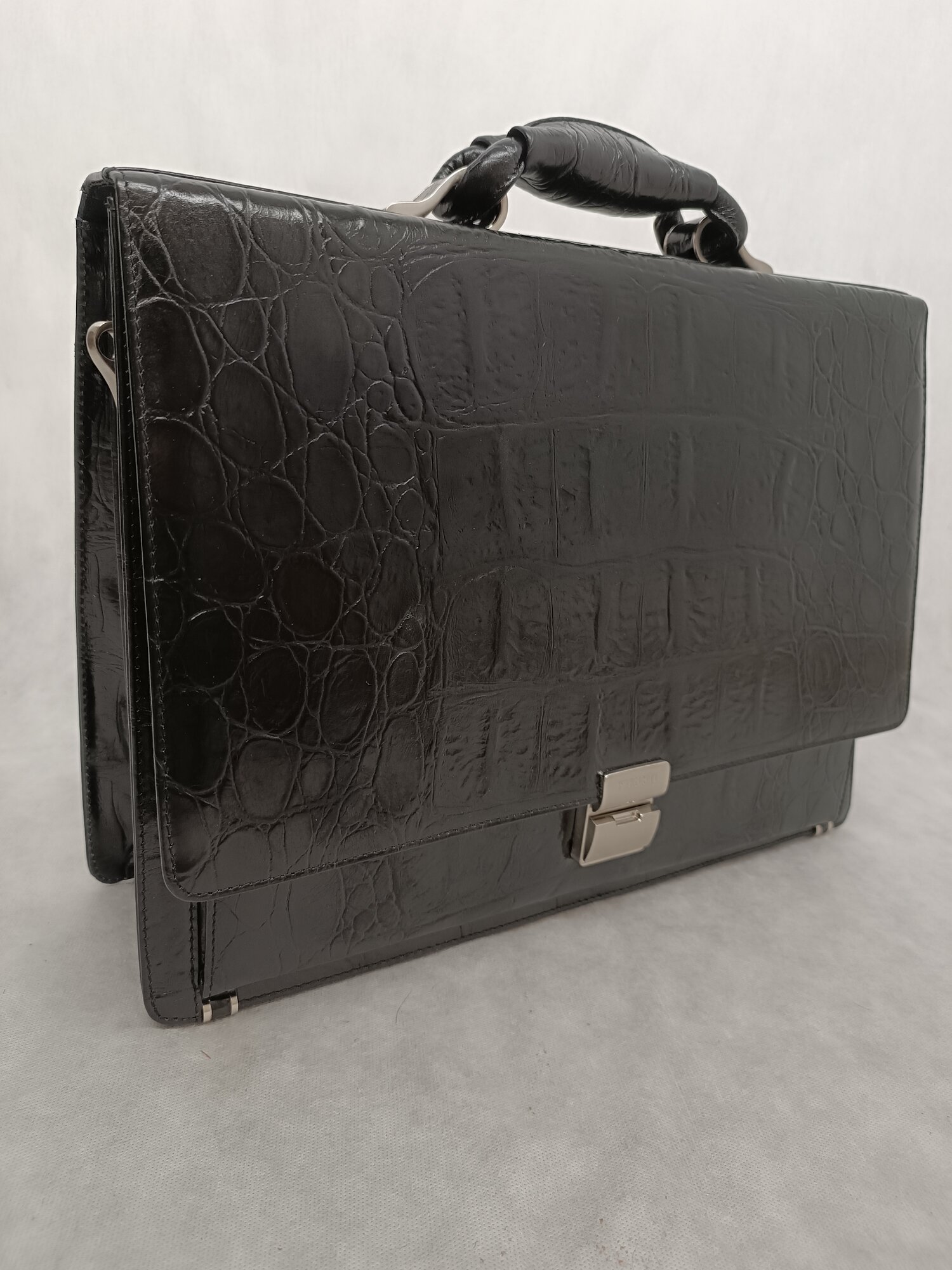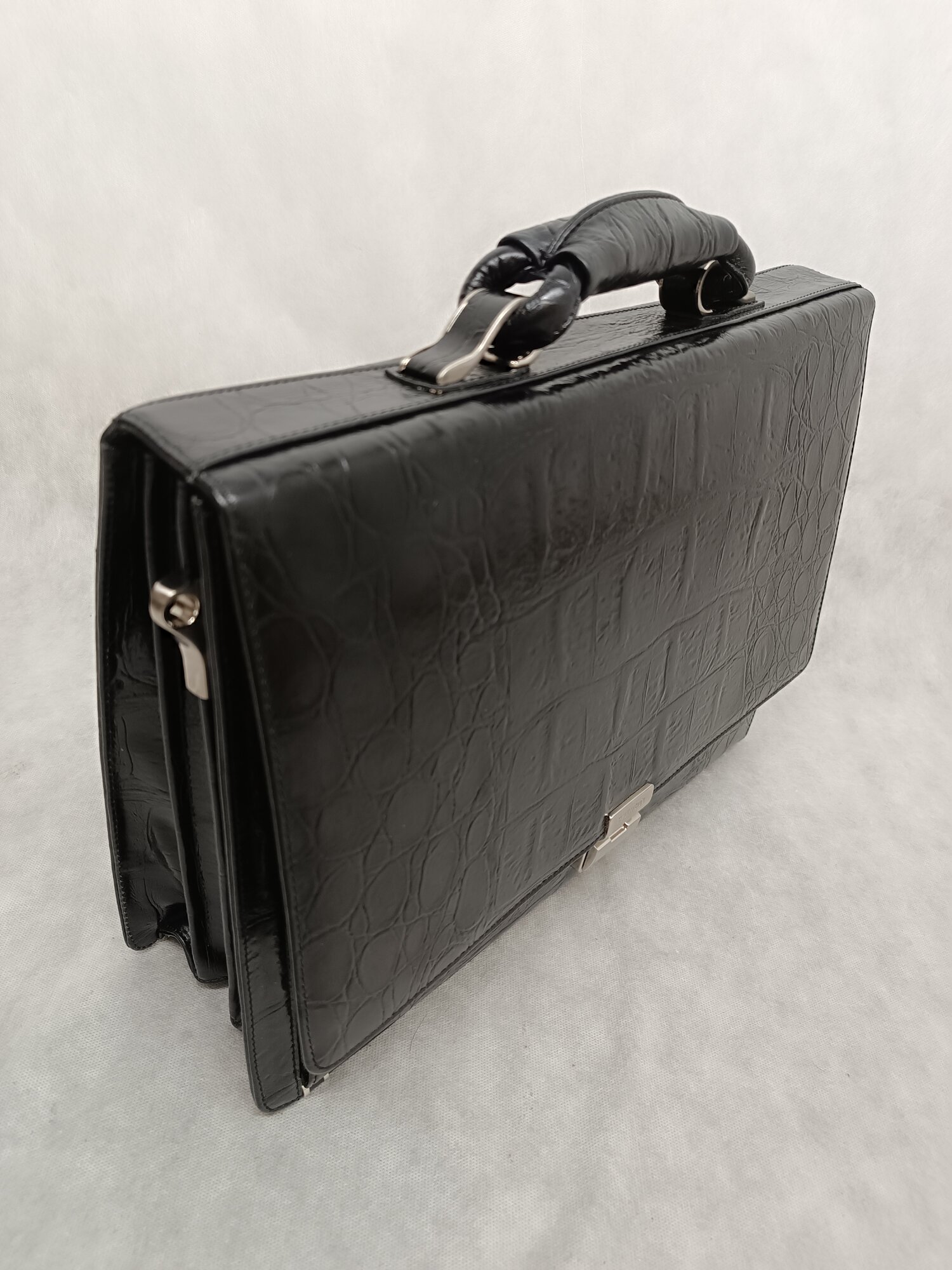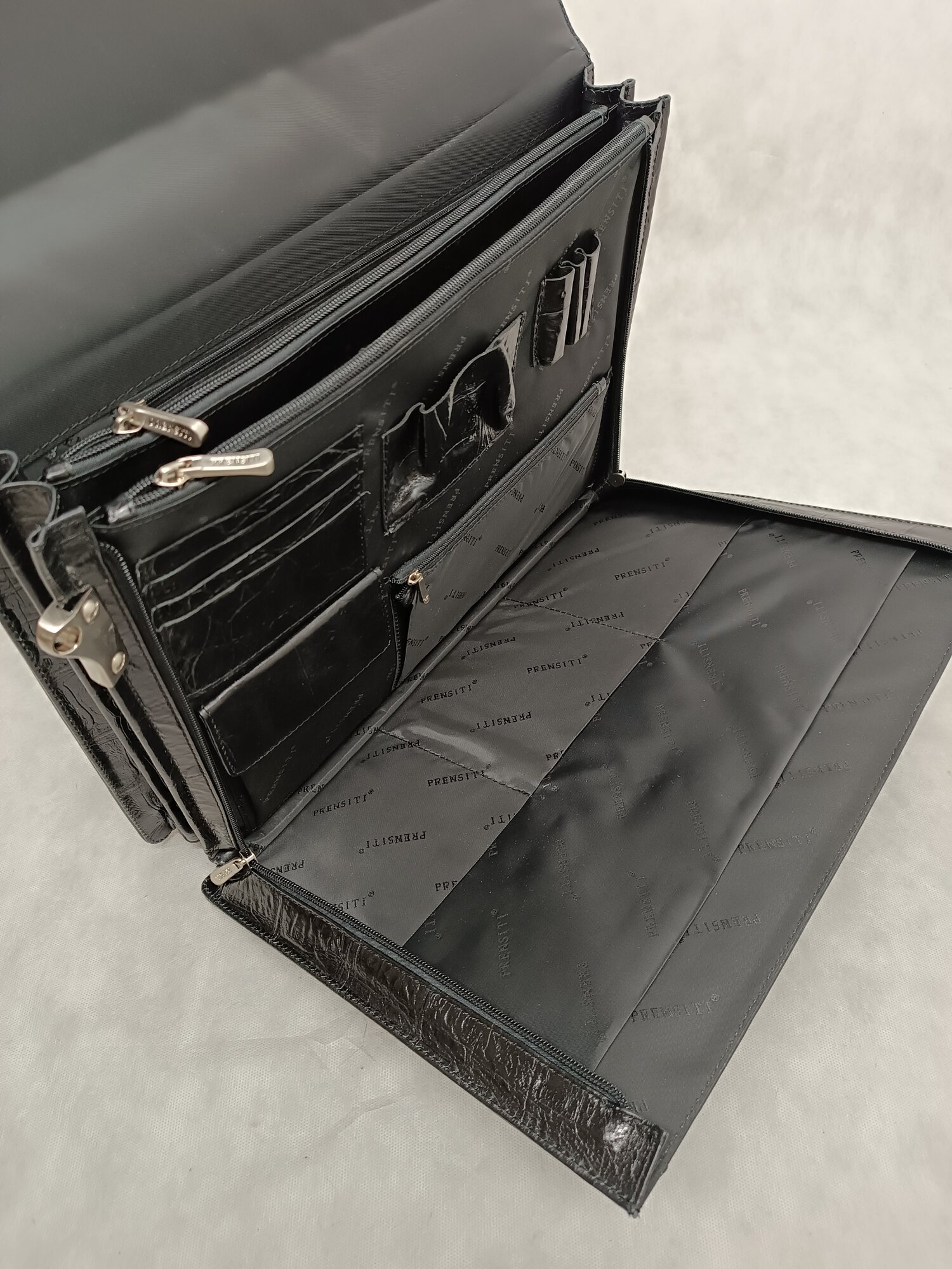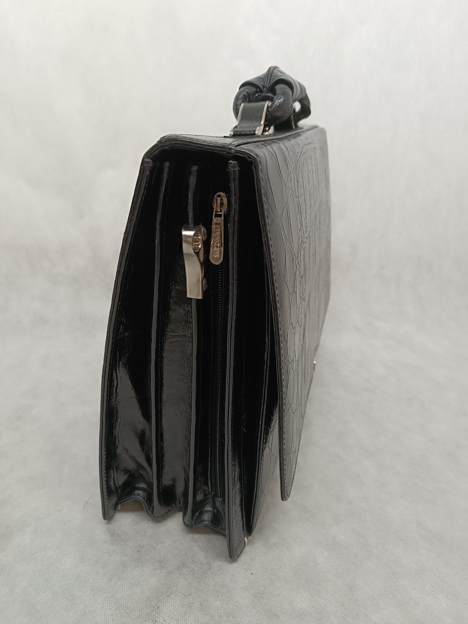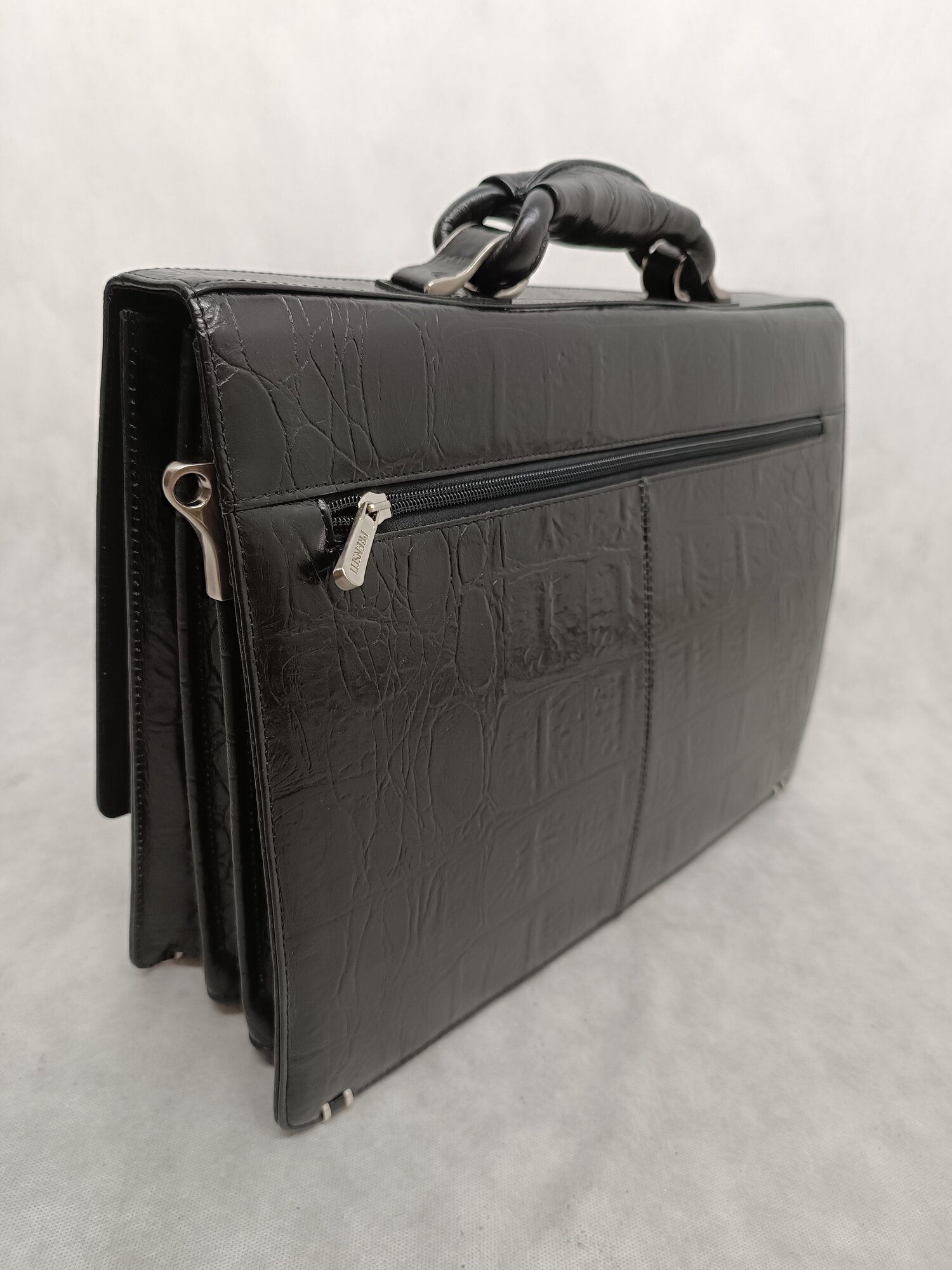 Портфель Prensiti, фактура под рептилию, тиснение, черный интересное: