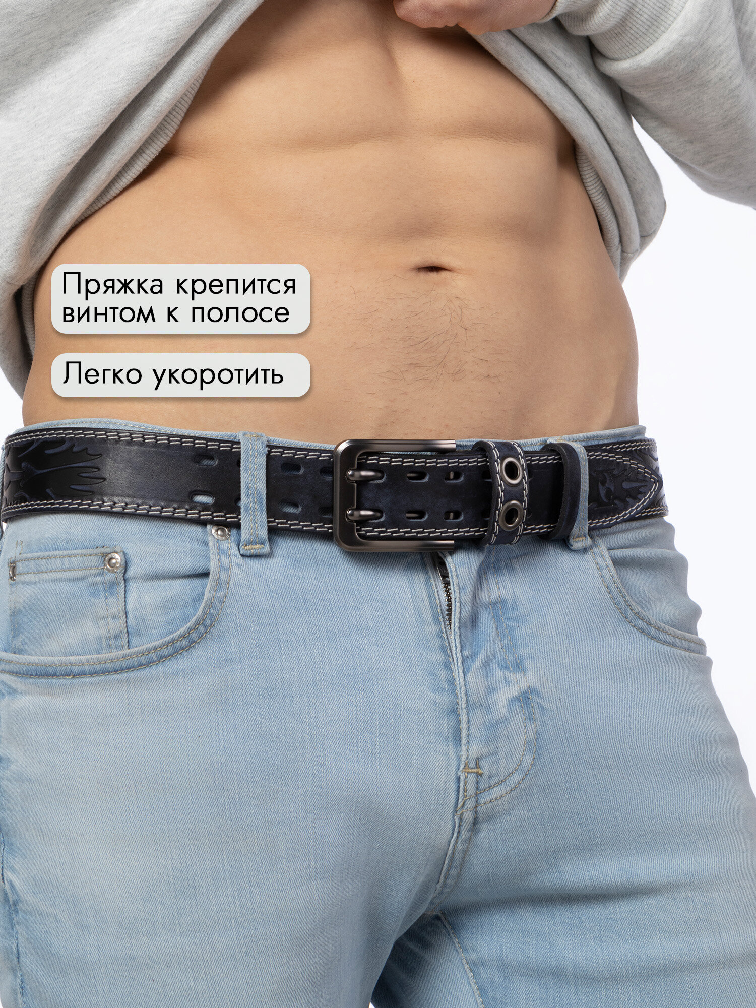 Ремень LEO HARDY для мужчин, размер 100, синий/черный