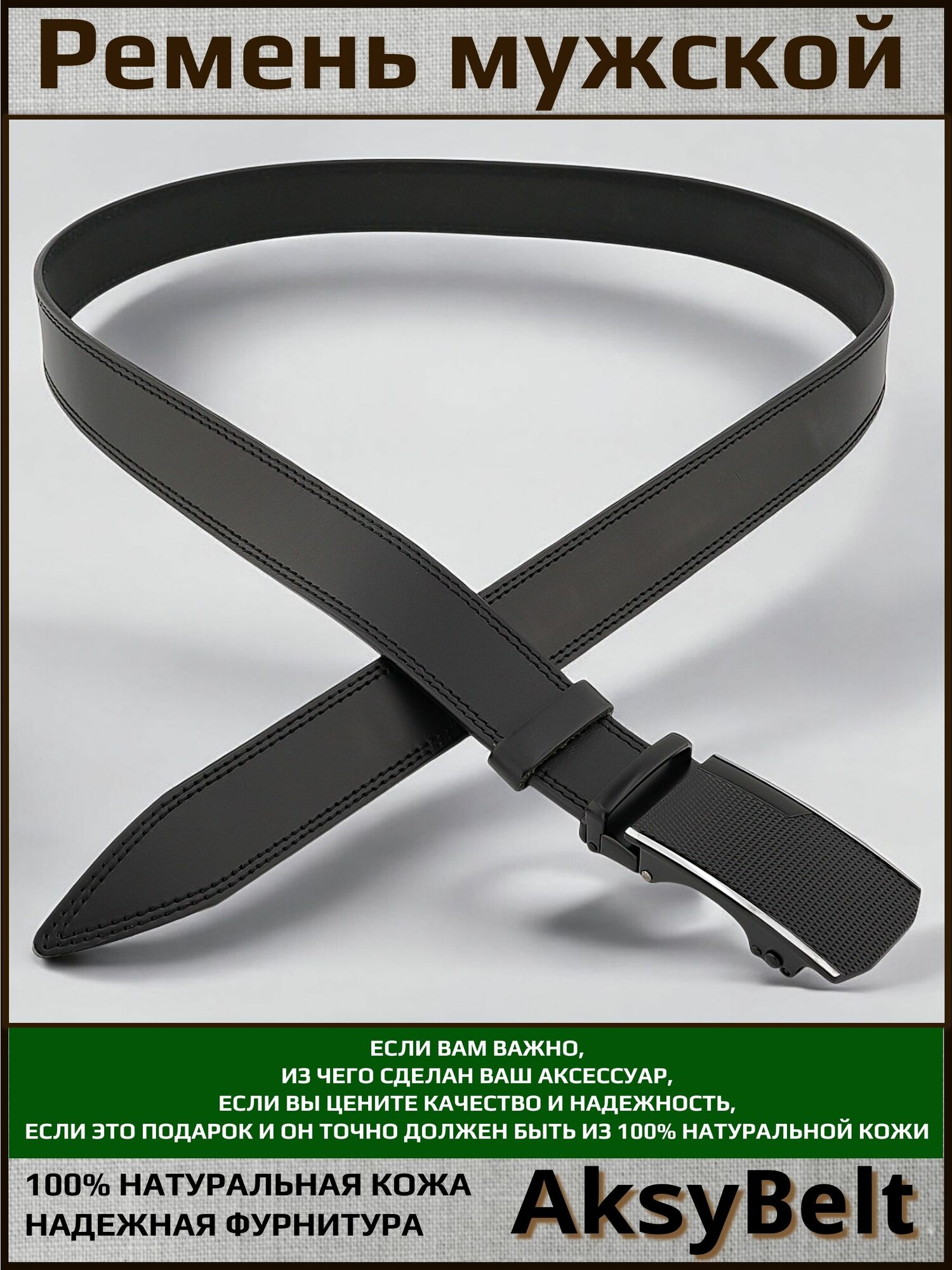 Ремень AksyBelt для мужчин, размер 120, черный гладкий