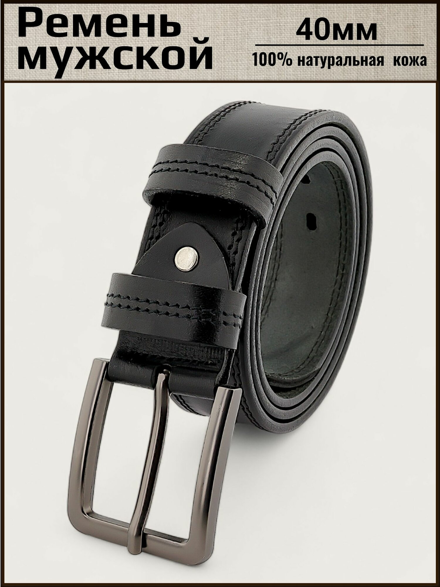 Ремень мужской кожаный AKSY BELT черный, 40мм, 2 строчка, Италия, 125 см