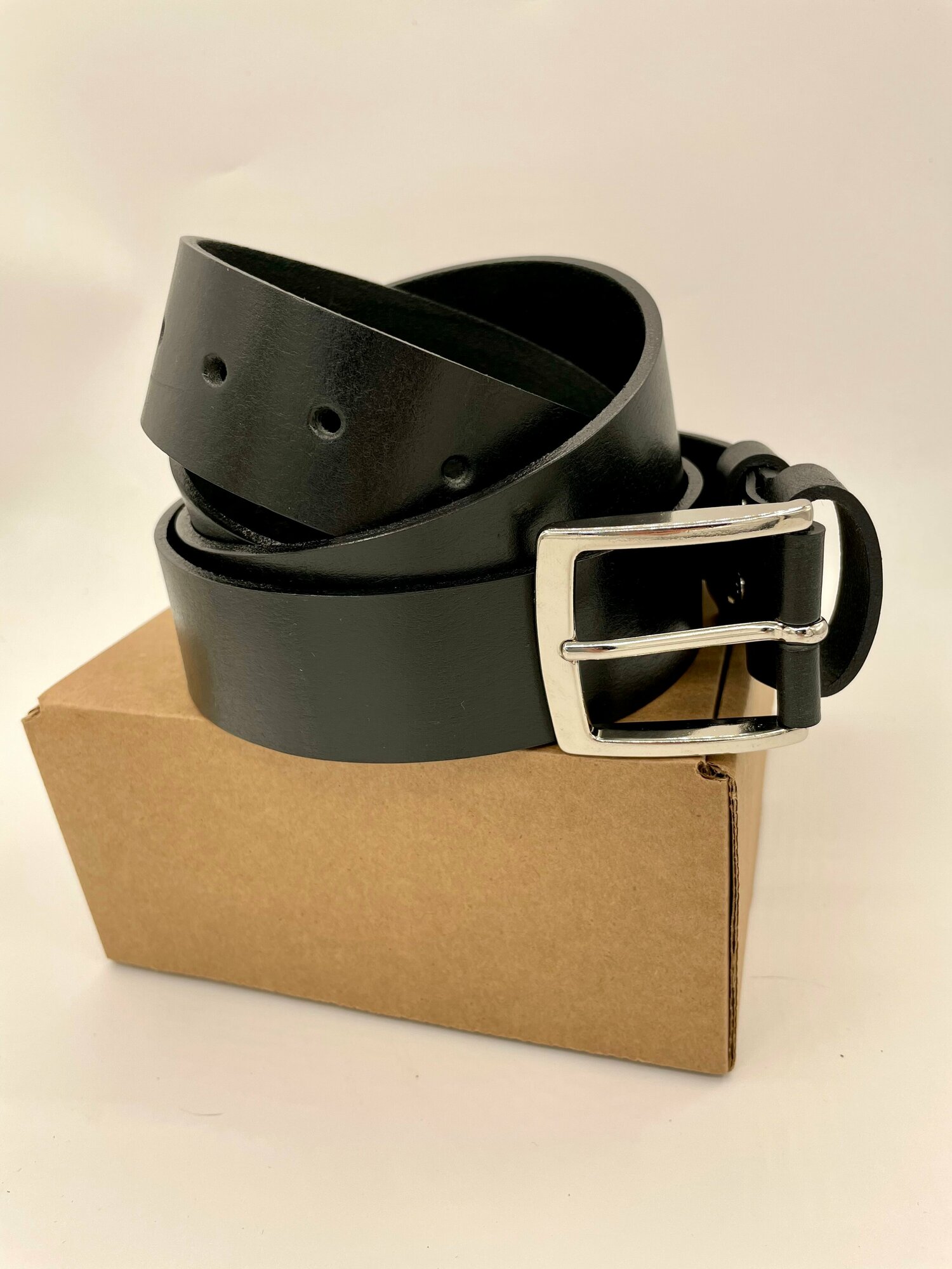 Ремень из натуральной кожи черный для мужчин и женщин, 4см, размер 160 см
