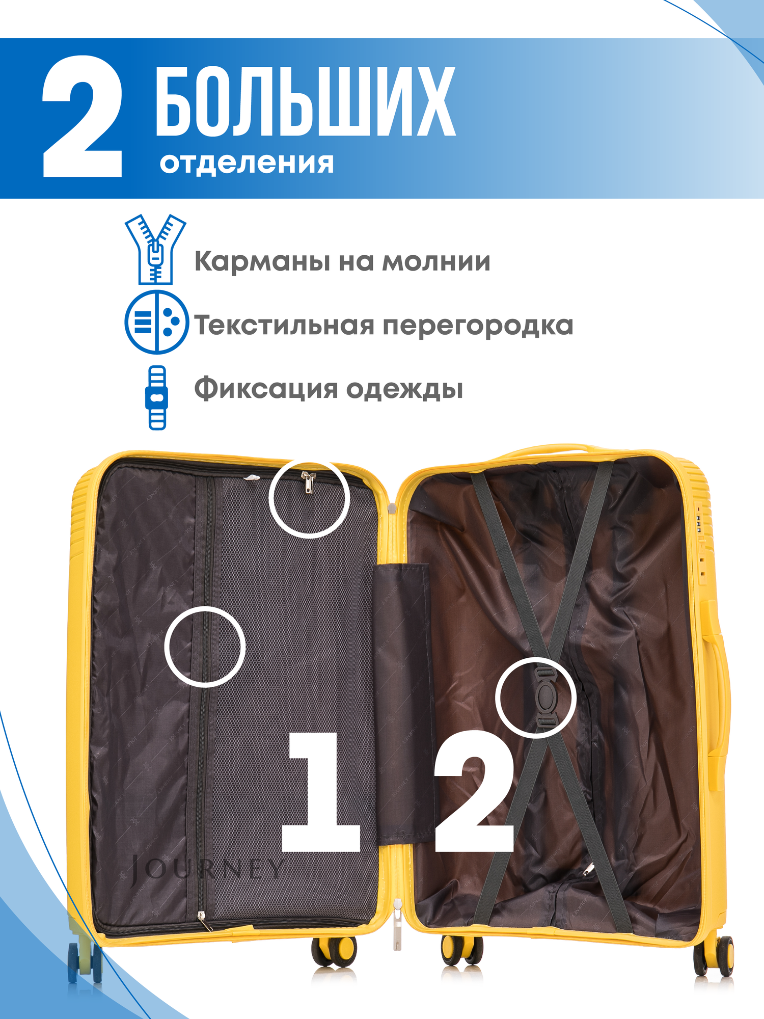 Чемодан JOURNEY, полипропилен, прочный, износостойкий, водонепроницаемый, 105 л, размер L, Желтый