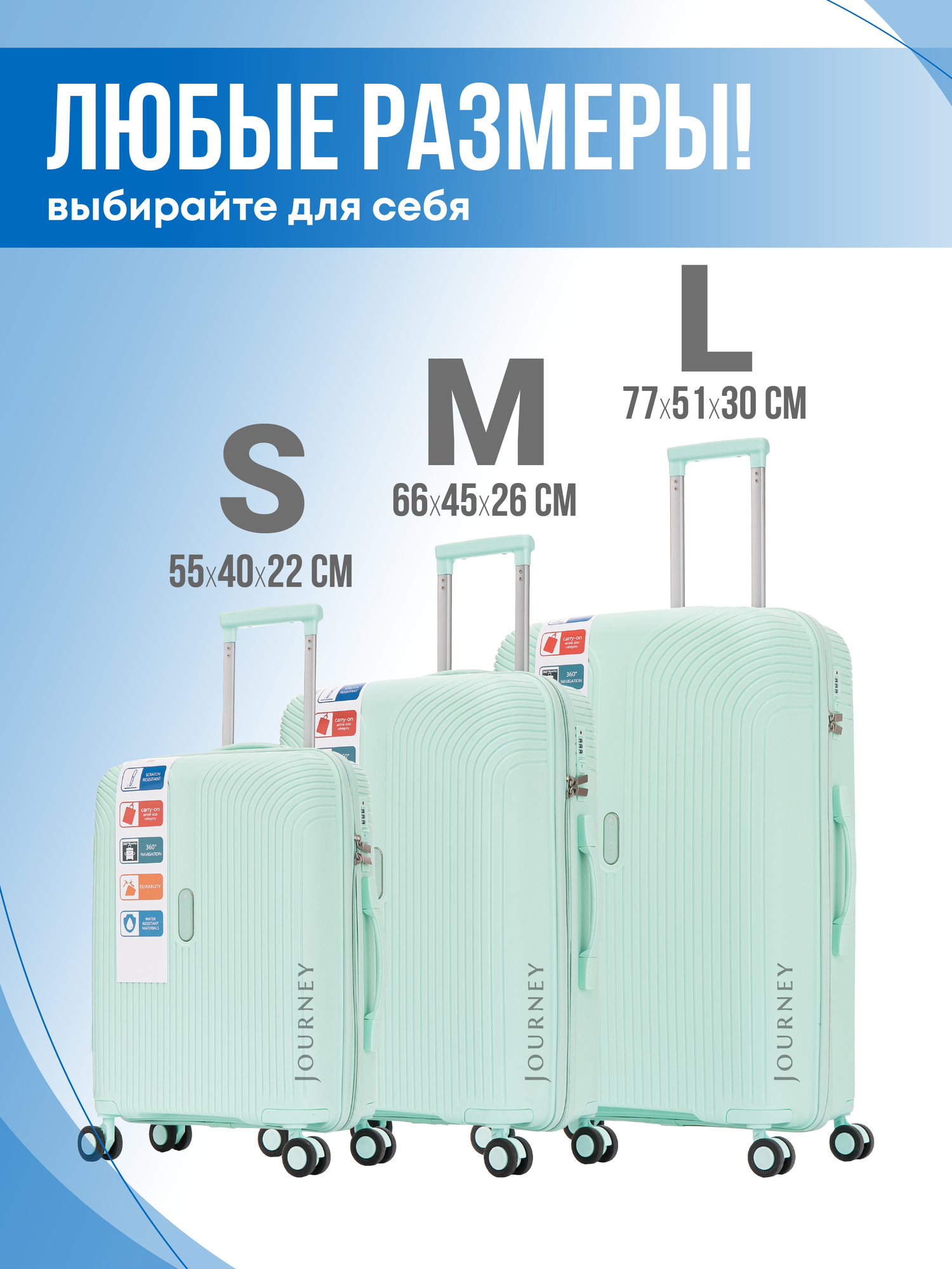 Чемодан JOURNEY, полипропилен, прочный, износостойкий, водонепроницаемый, 68 л, размер M, Мятный