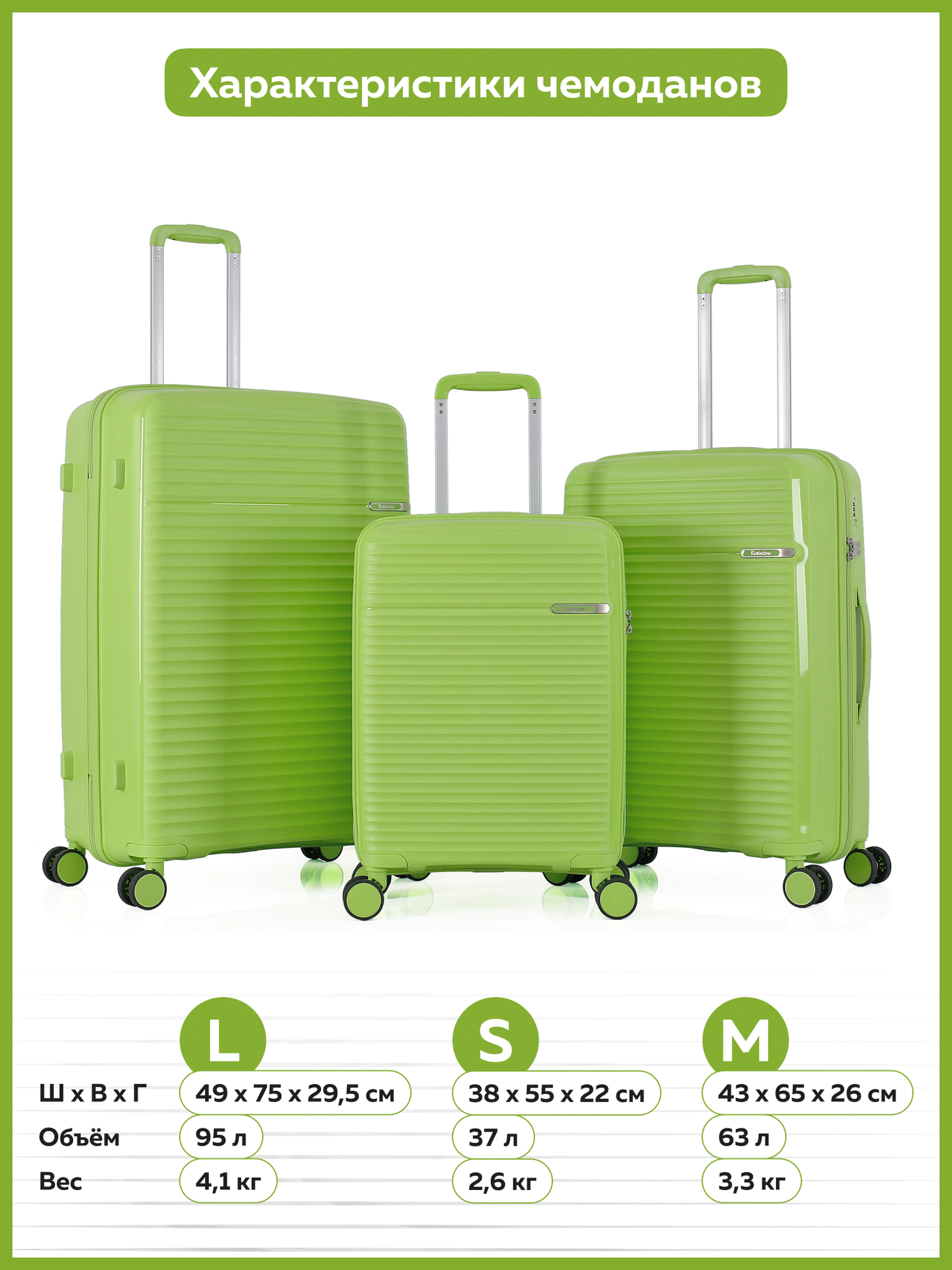 | Вес чемодана | 2.6 кг |