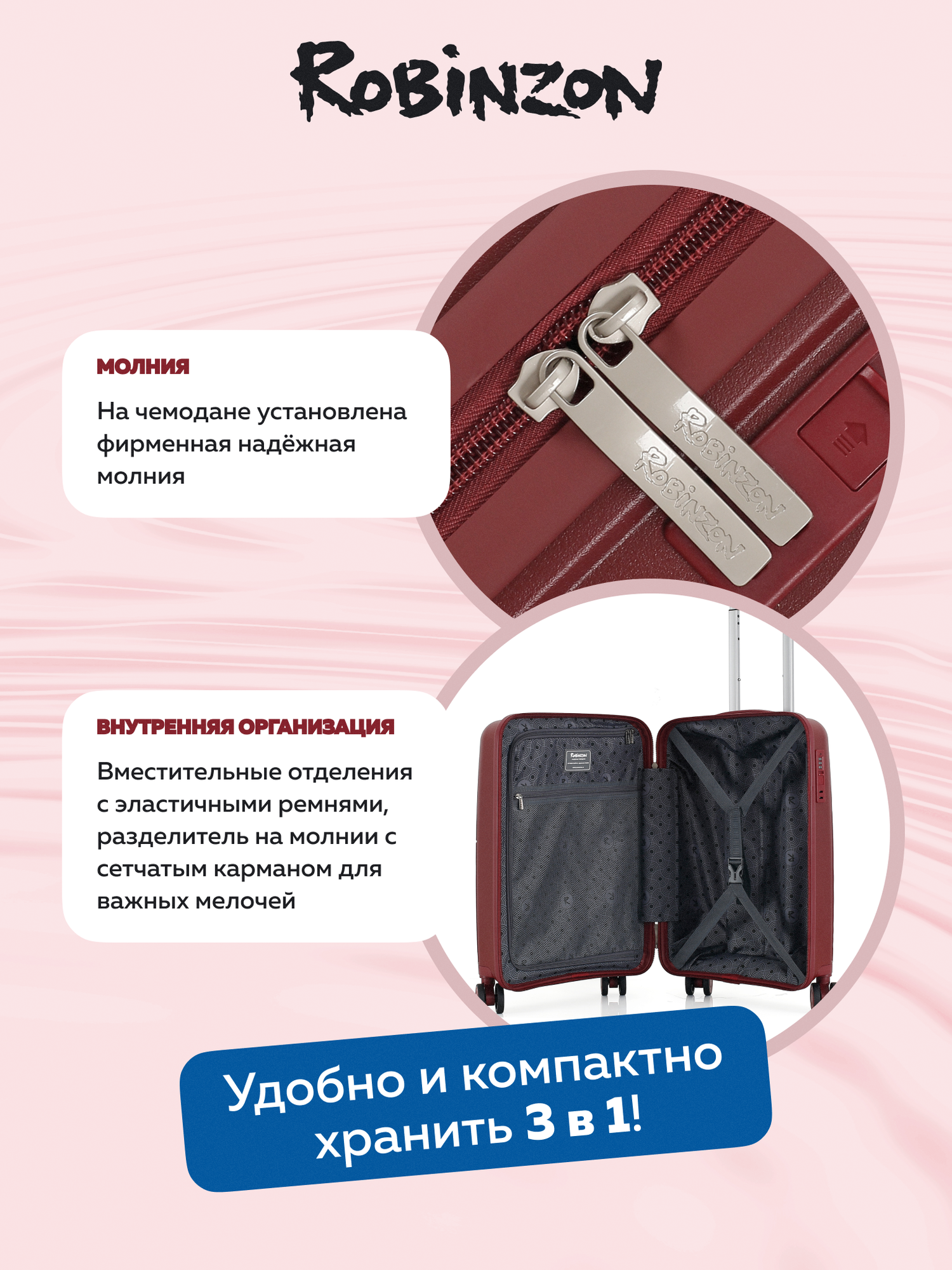 Ниже Вы можете прочитать отзывы на Чемодан Robinzon, 37 л, красный, ознакомится с подробными характеристиками, посмотреть интересные обзоры и фотографии на Чемодан Robinzon, 37 л, красный.