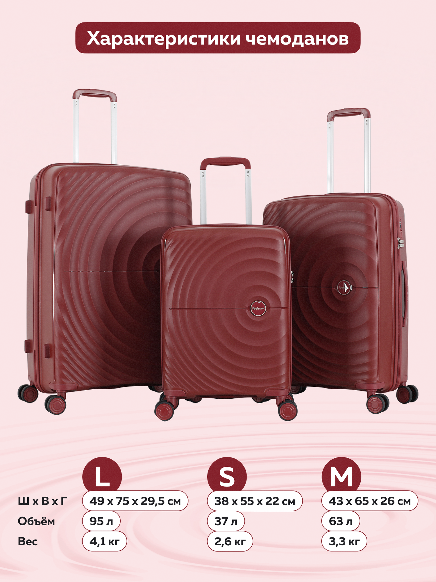 Чемодан Robinzon RP1403-J Jamaica S *29 Wine Red
