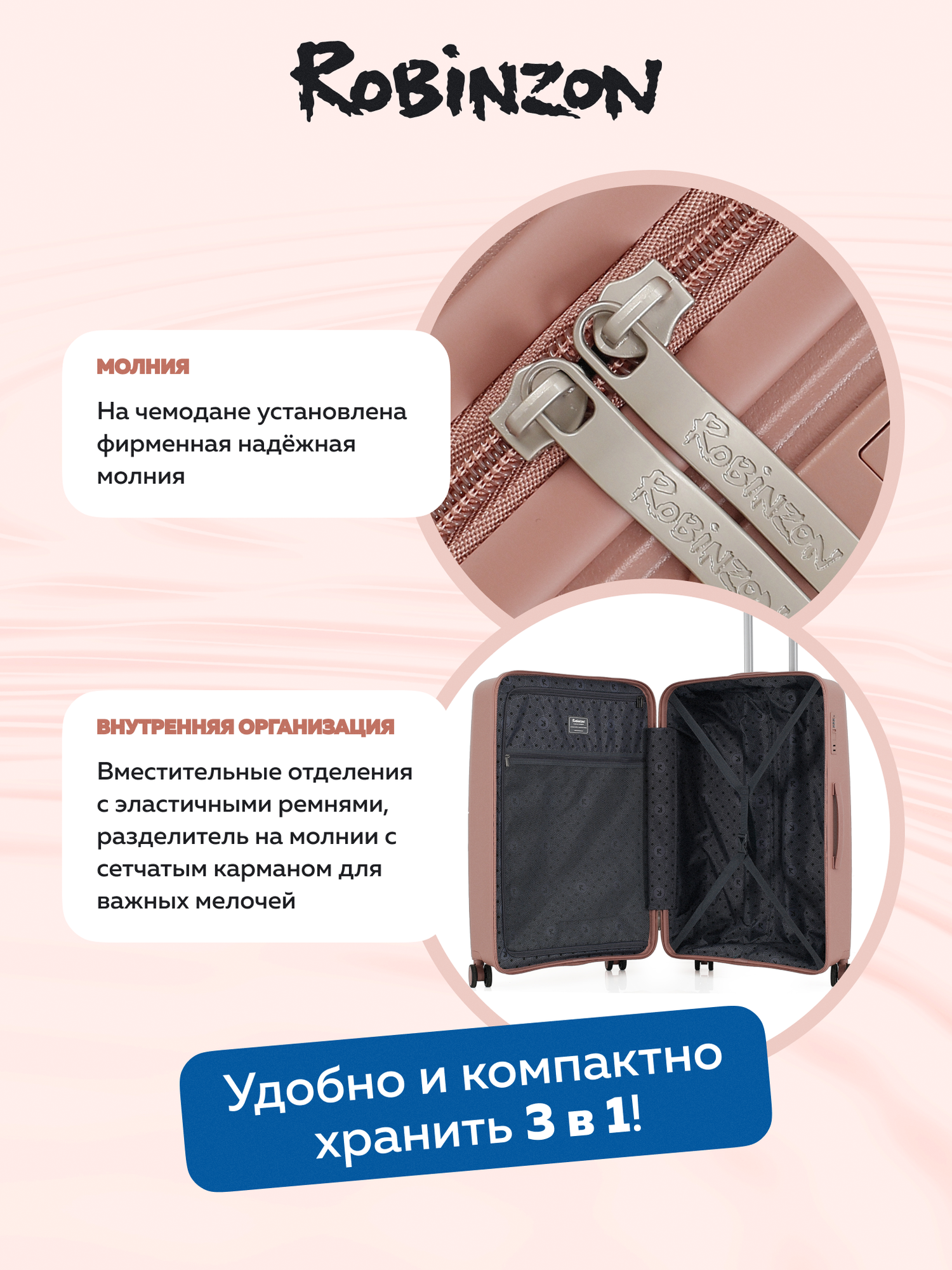 Ниже Вы можете прочитать отзывы на Чемодан Robinzon, 95 л, розовый, ознакомится с подробными характеристиками, посмотреть интересные обзоры и фотографии на Чемодан Robinzon, 95 л, розовый.