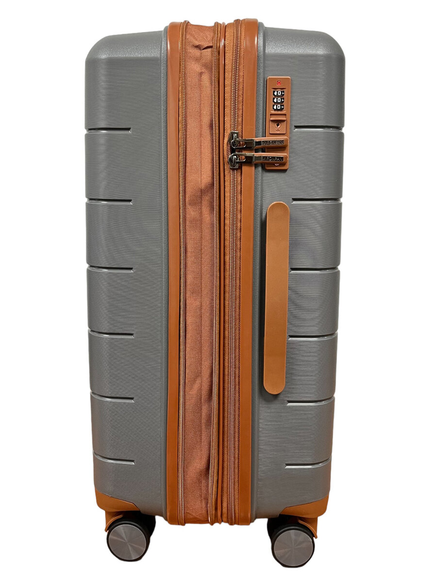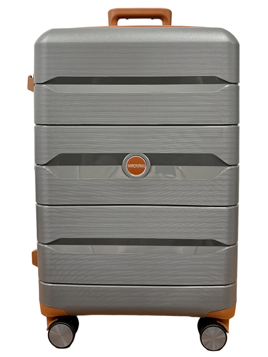 Чемодан из полипропилена MIRONPAN, средний М, 64 см, 70 л, увеличение +4 см, серый