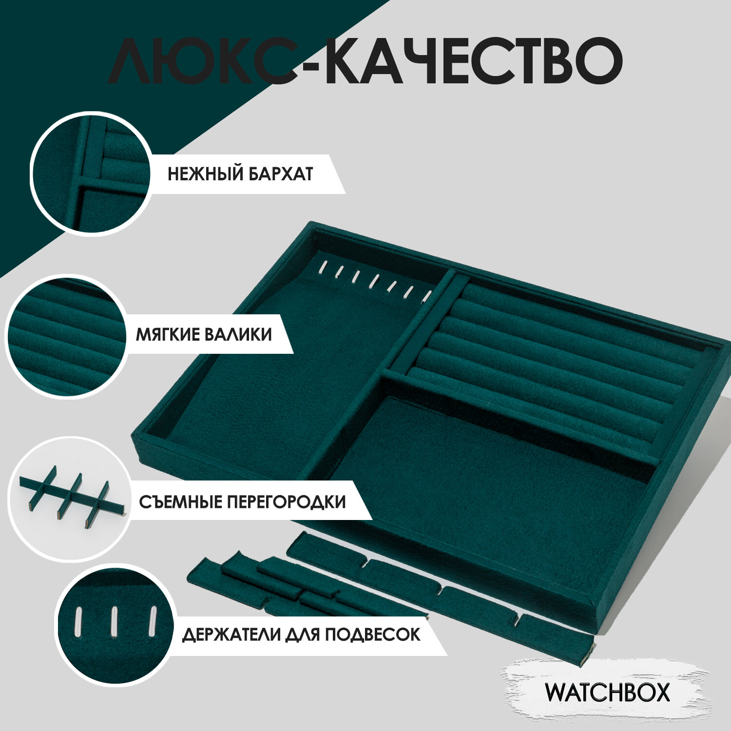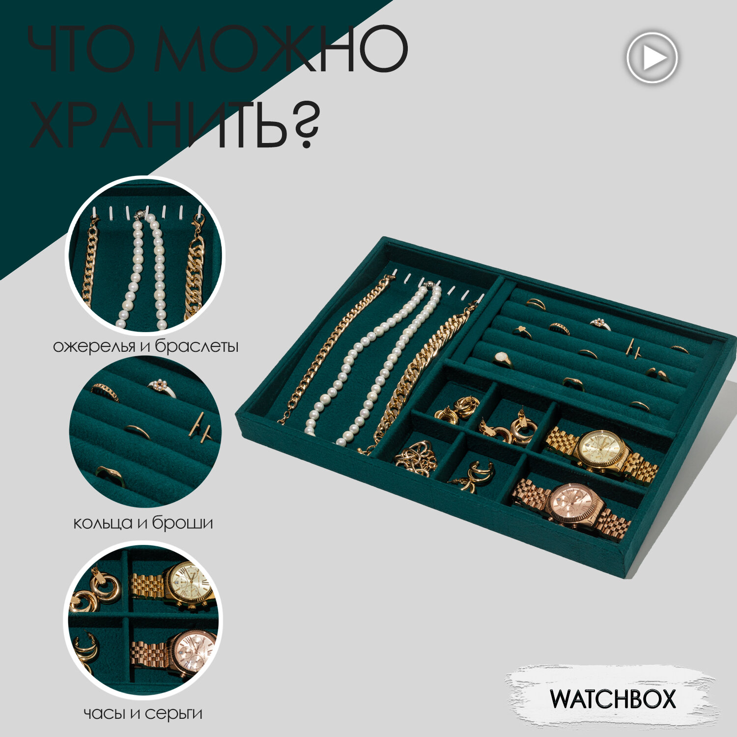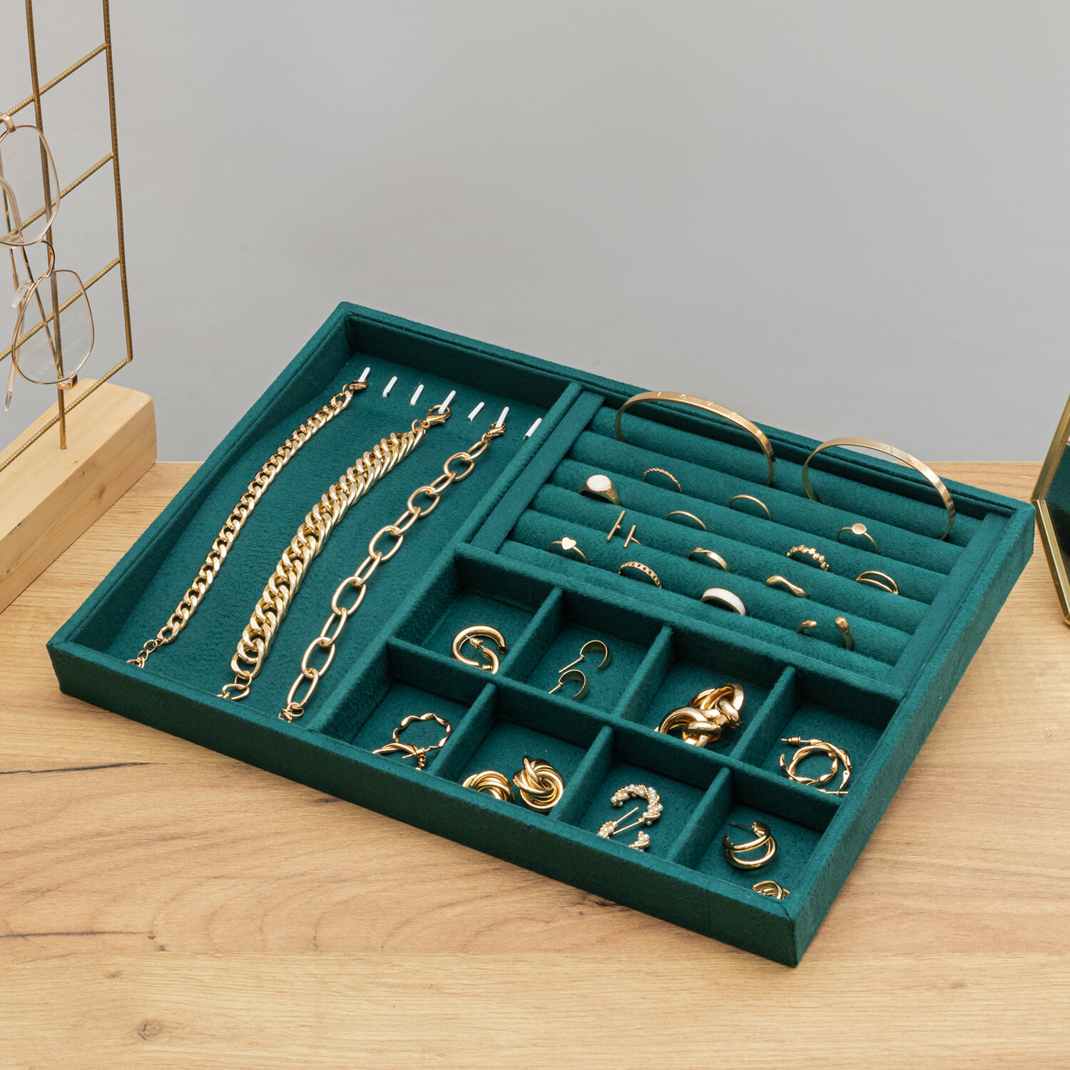Шкатулка для украшений и аксессуаров из велюра одноуровневая подставка органайзер CloxBox JB300-GN Зеленая