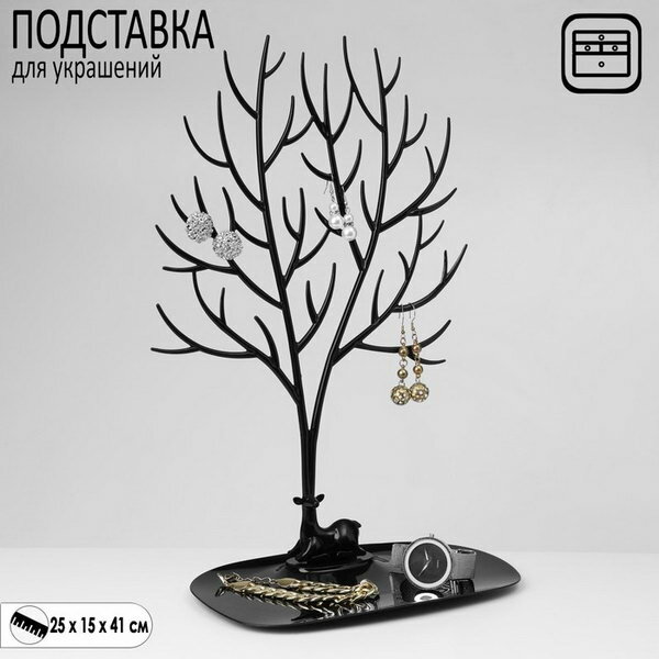 Подставка для украшений "Олень", 25 х 15 х 41 см, прямоугольное основание, цвет чёрный (1шт.)